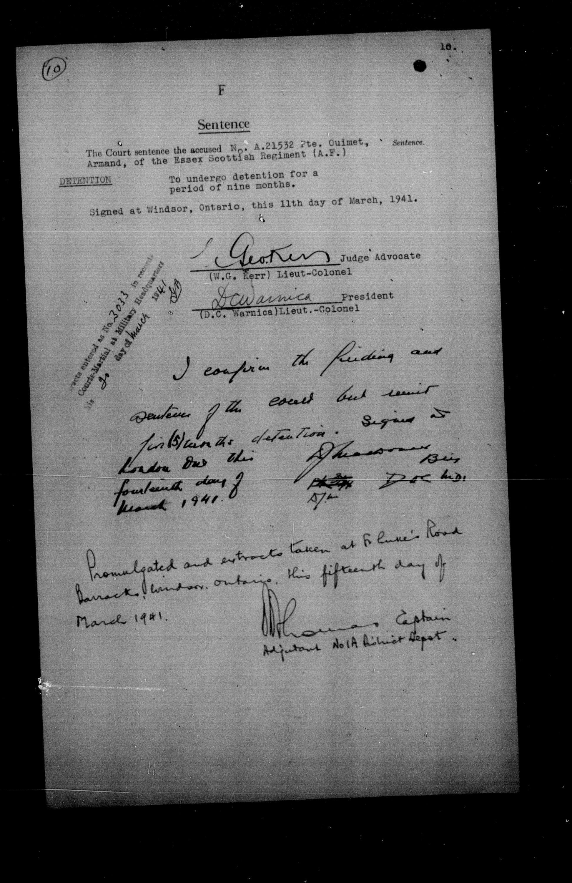 Canadian Army Courts Martial documents (1939-1945) - 15712