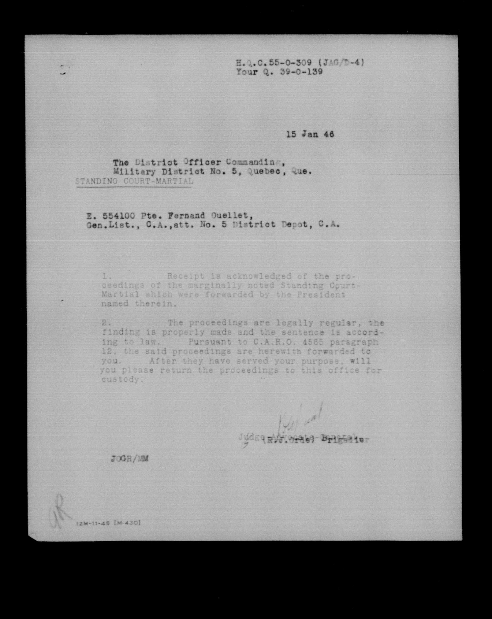 Canadian Army Courts Martial documents (1939-1945) - 15714
