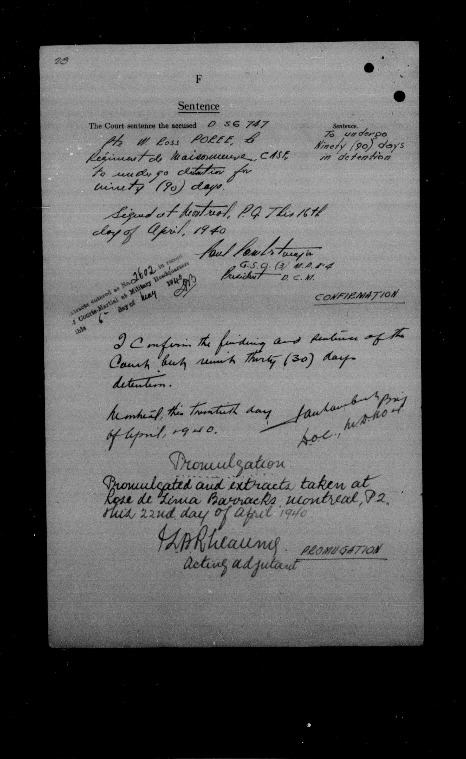 Canadian Army Courts Martial documents (1939-1945) - 15715