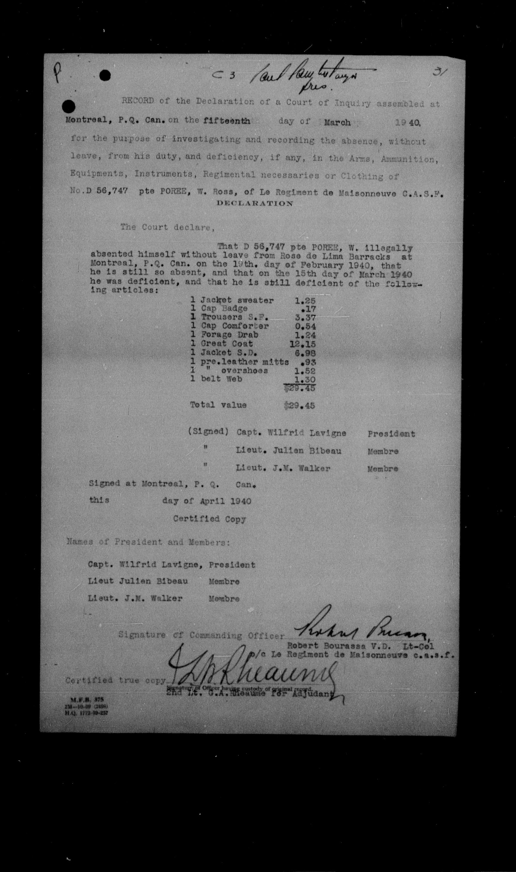 Canadian Army Courts Martial documents (1939-1945) - 15715