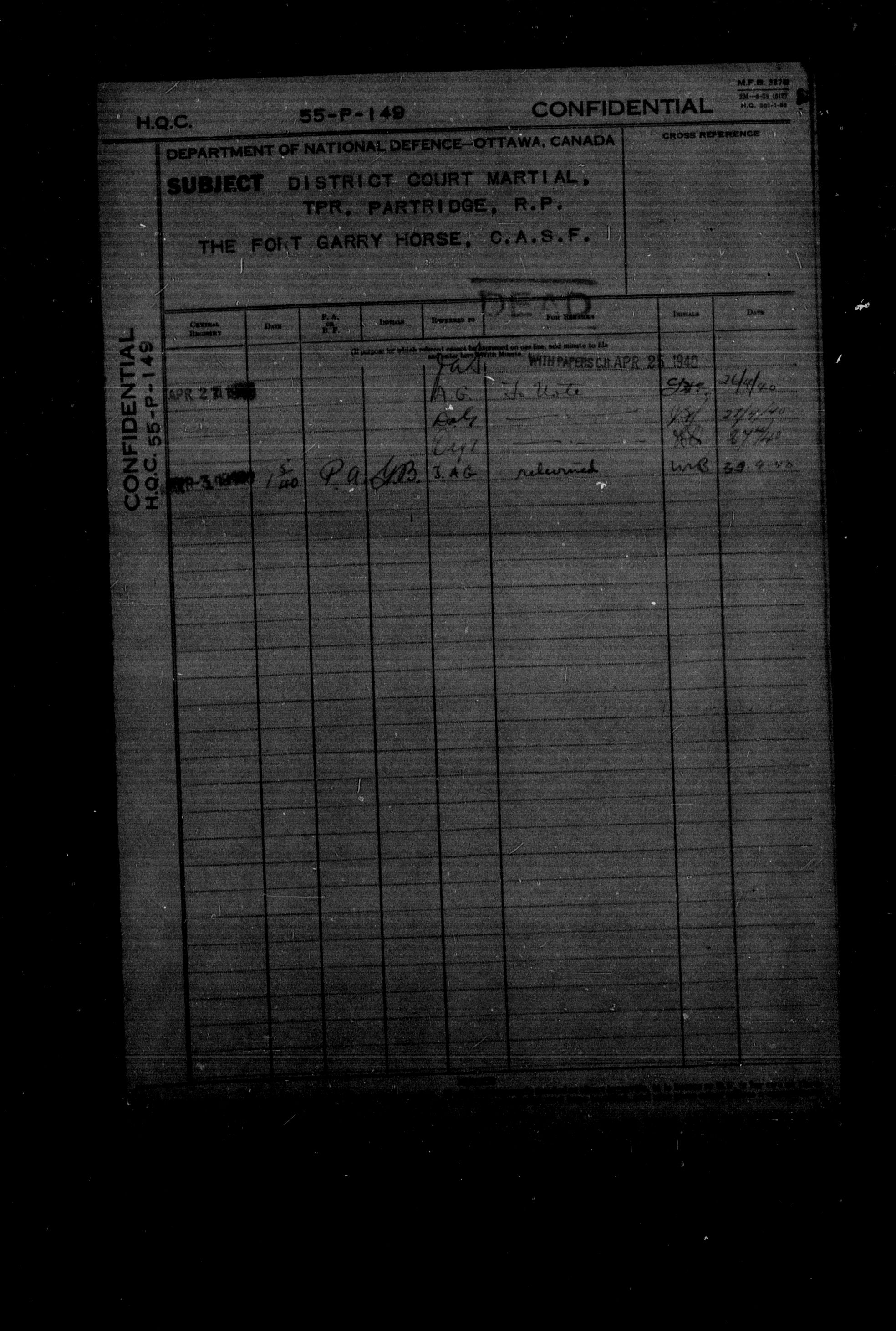 Canadian Army Courts Martial documents (1939-1945) - 15715