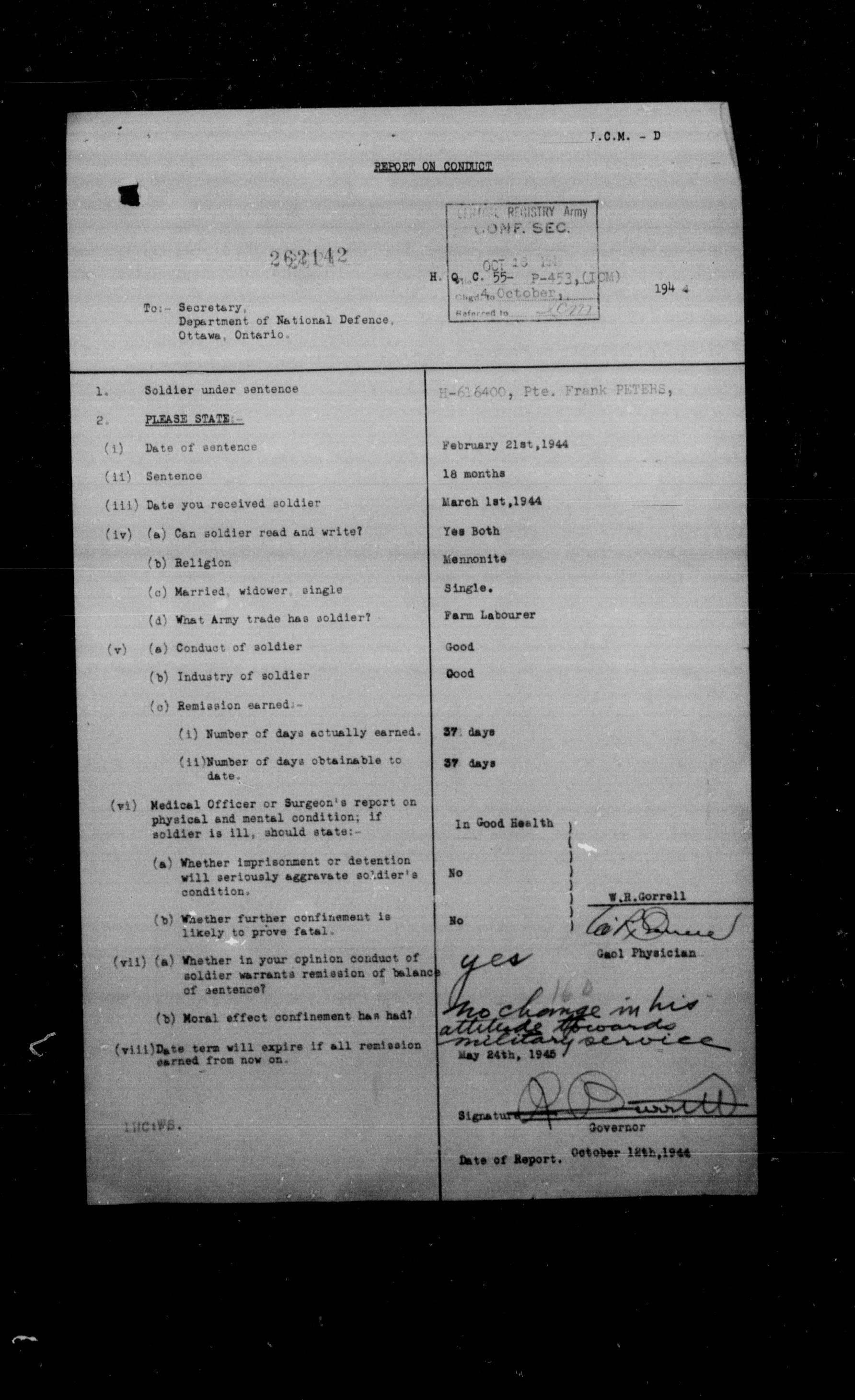 Canadian Army Courts Martial documents (1939-1945) - 15717