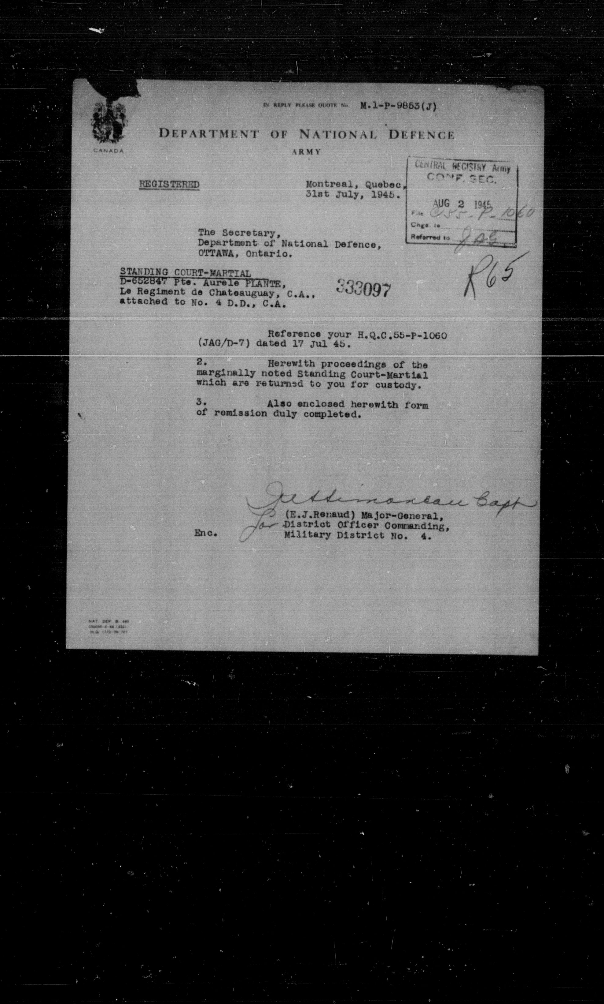 Canadian Army Courts Martial documents (1939-1945) - 15723