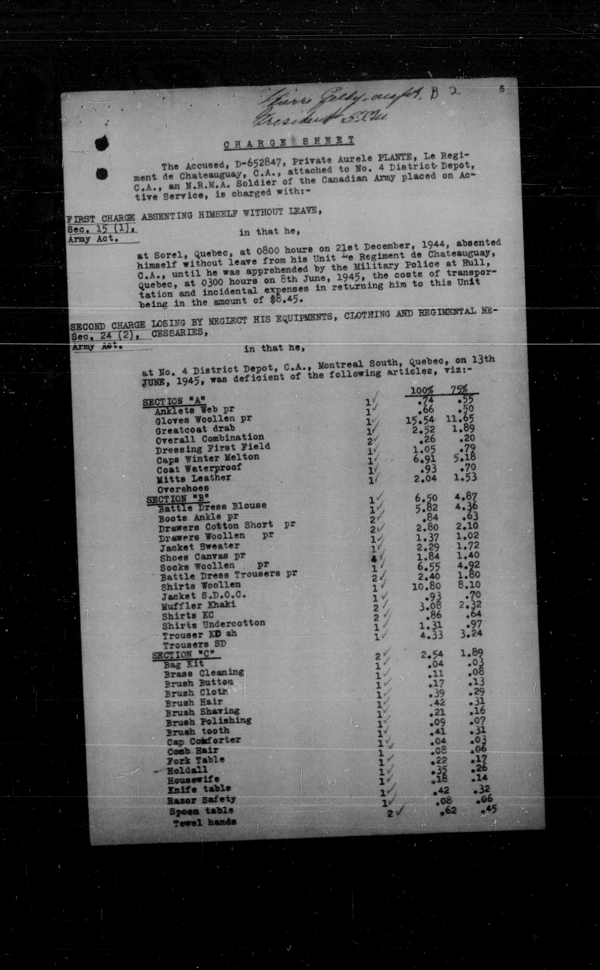 Canadian Army Courts Martial documents (1939-1945) - 15723