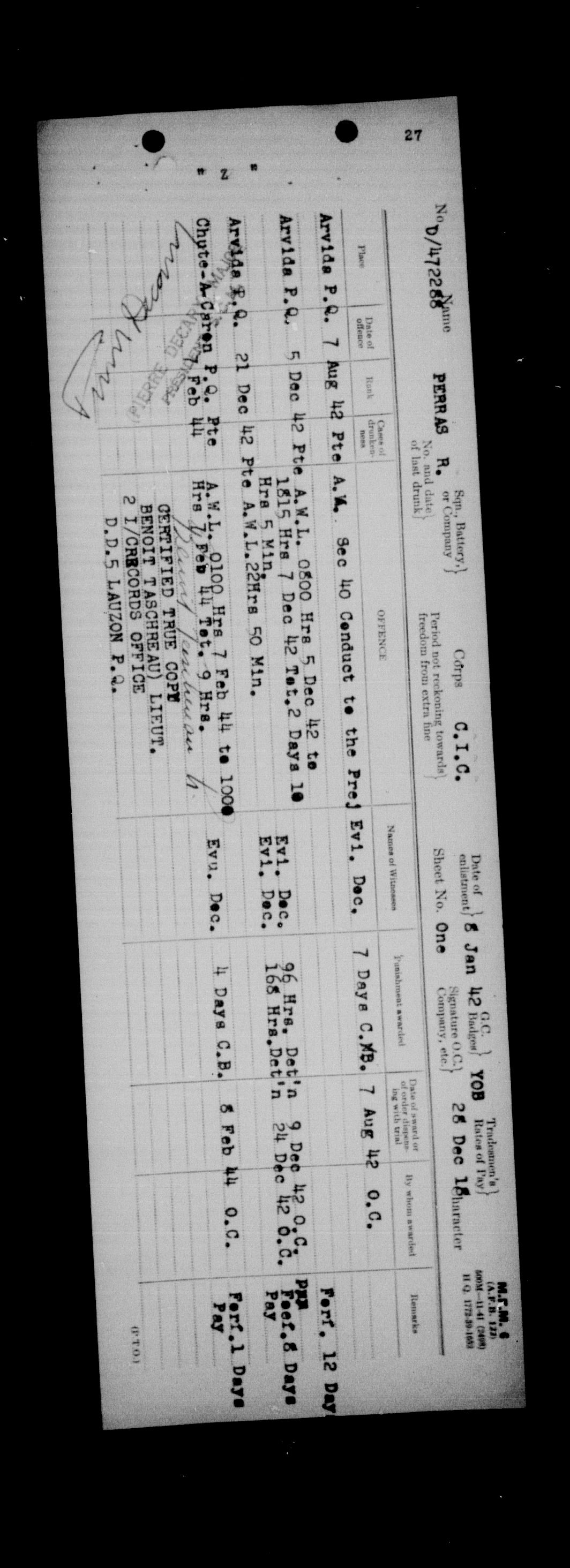 Canadian Army Courts Martial documents (1939-1945) - 15725