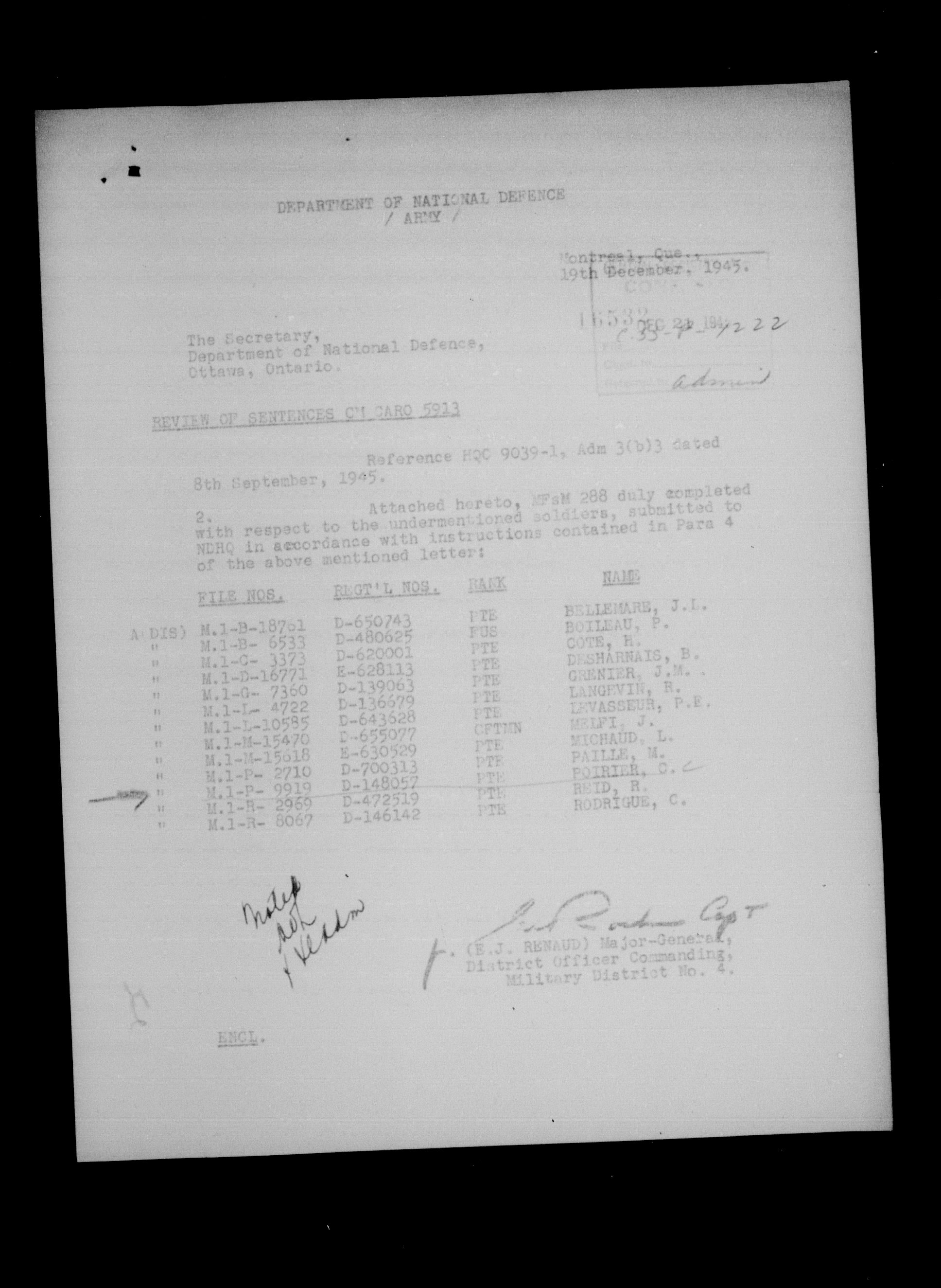 Canadian Army Courts Martial documents (1939-1945) - 15725