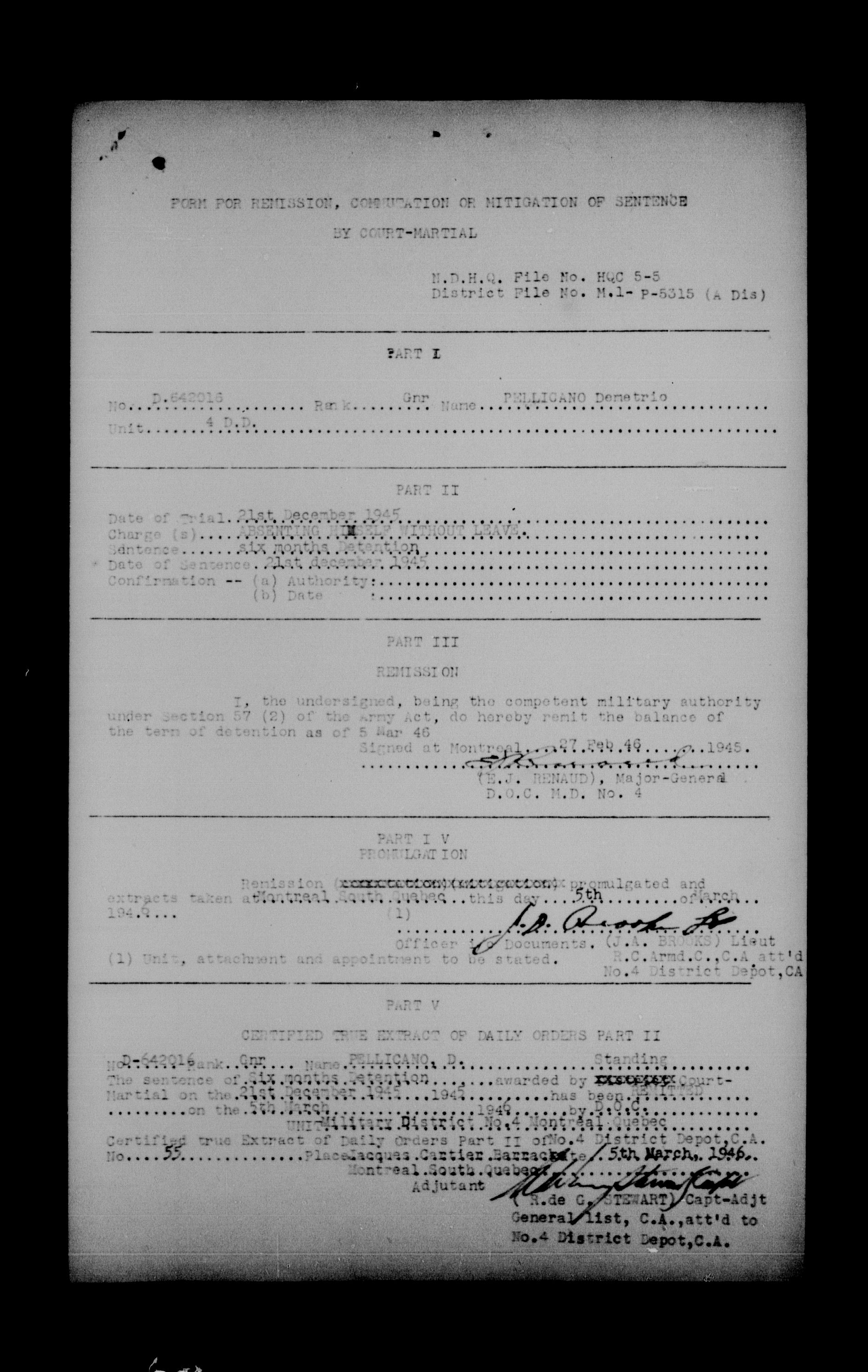 Canadian Army Courts Martial documents (1939-1945) - 15726