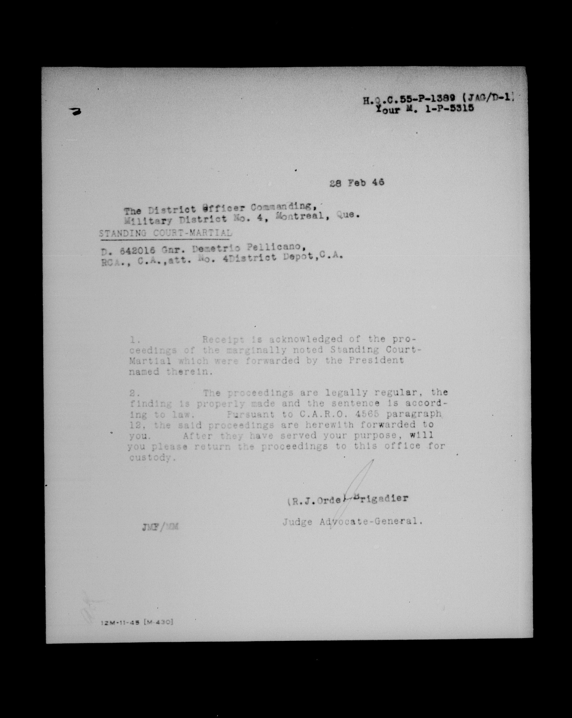 Canadian Army Courts Martial documents (1939-1945) - 15726