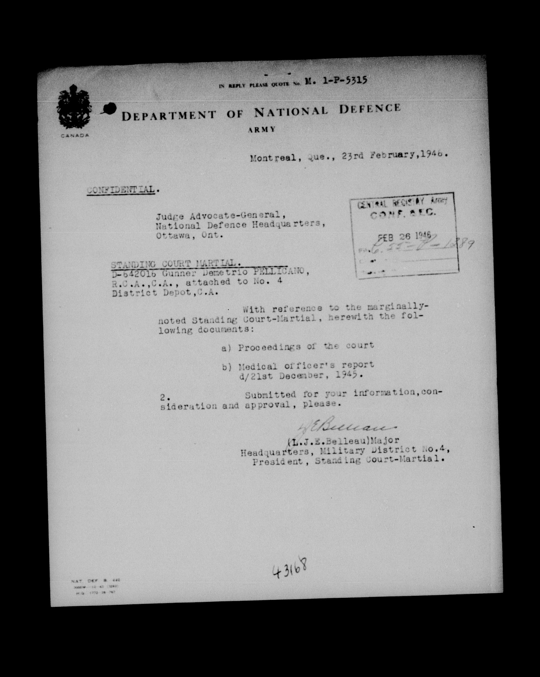 Canadian Army Courts Martial documents (1939-1945) - 15726