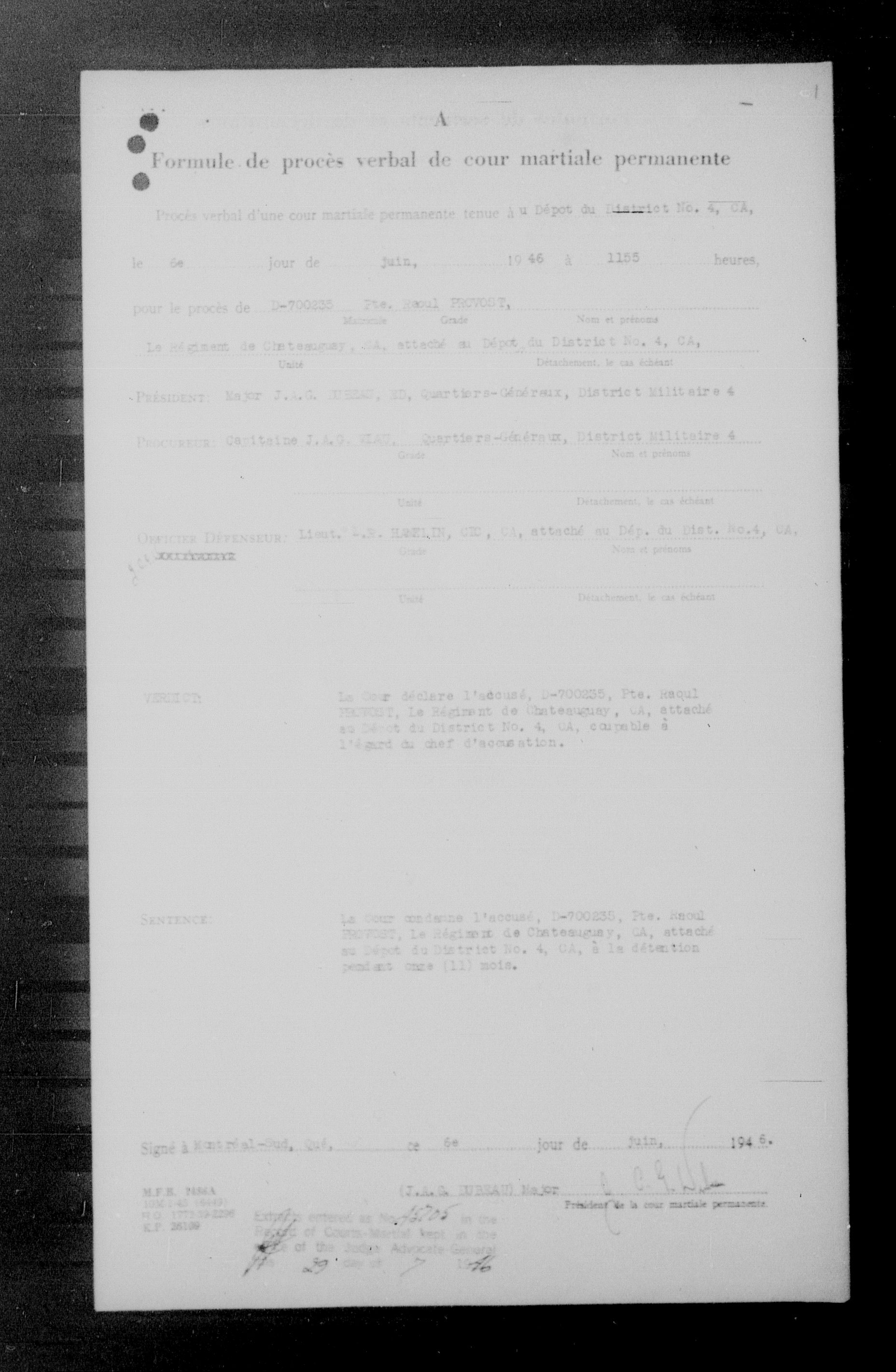 Canadian Army Courts Martial documents (1939-1945) - 15726