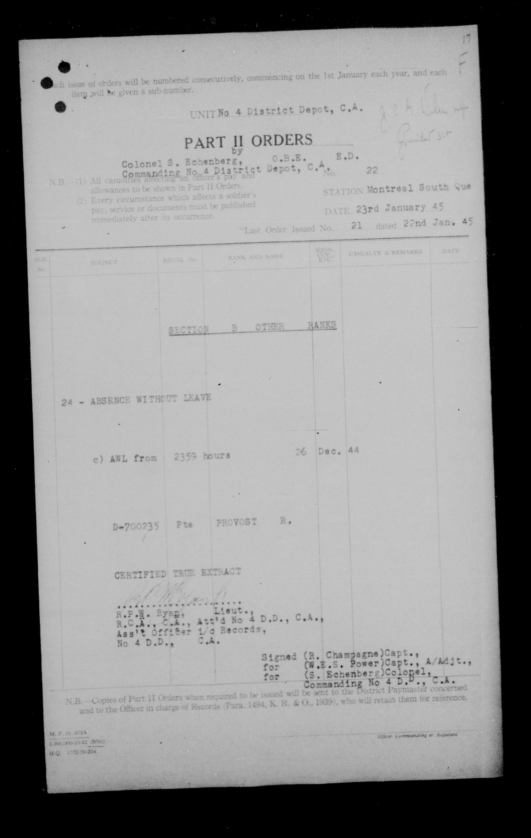 Canadian Army Courts Martial documents (1939-1945) - 15726