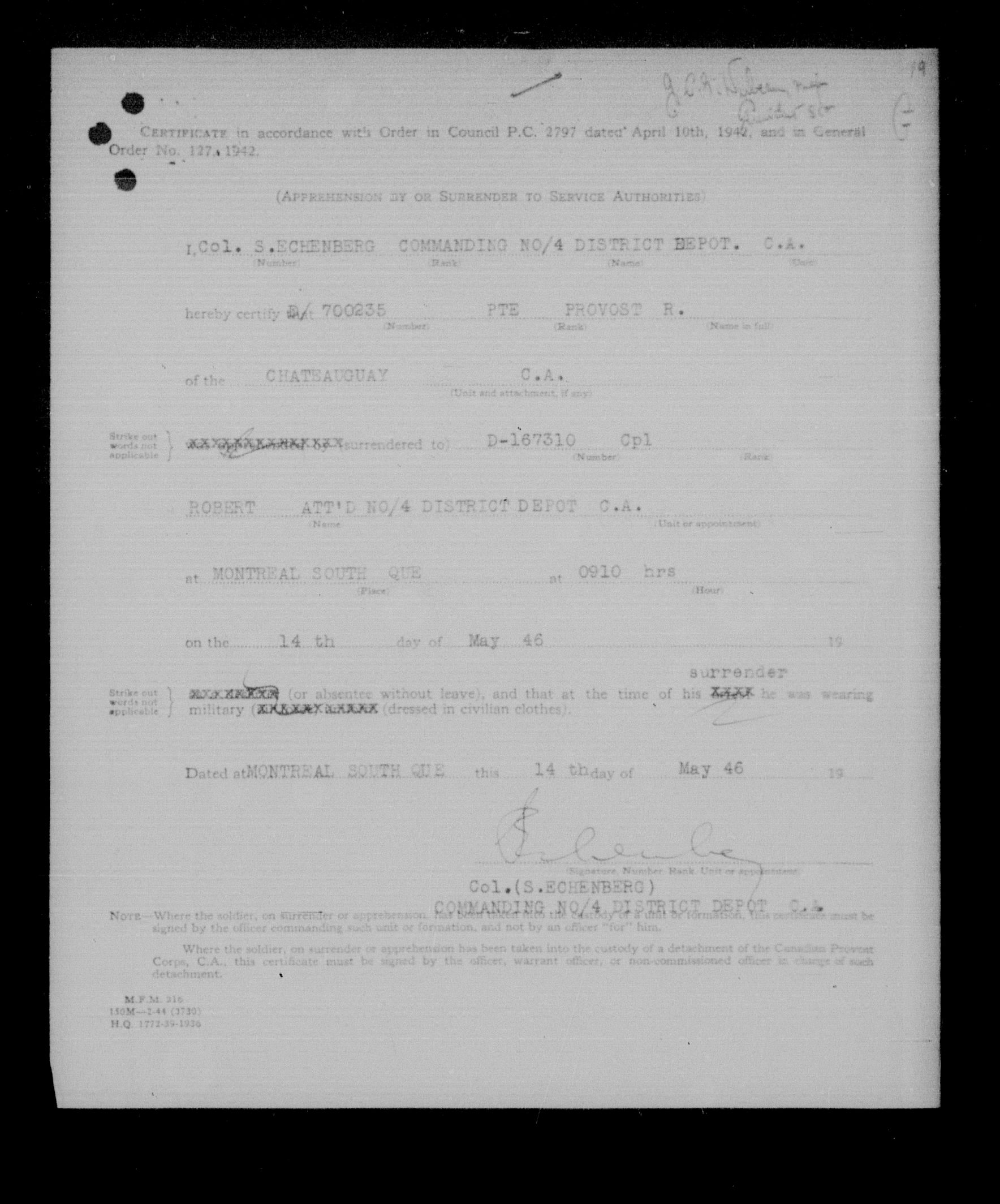 Canadian Army Courts Martial documents (1939-1945) - 15726