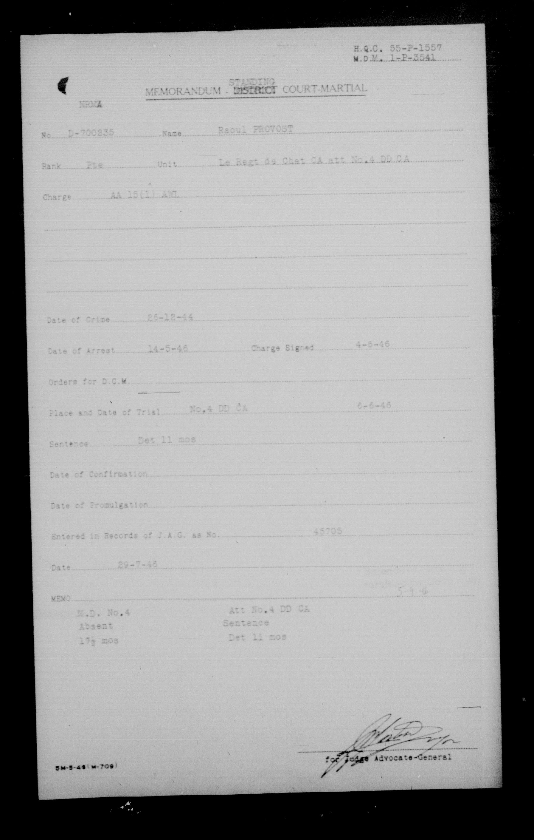 Canadian Army Courts Martial documents (1939-1945) - 15726