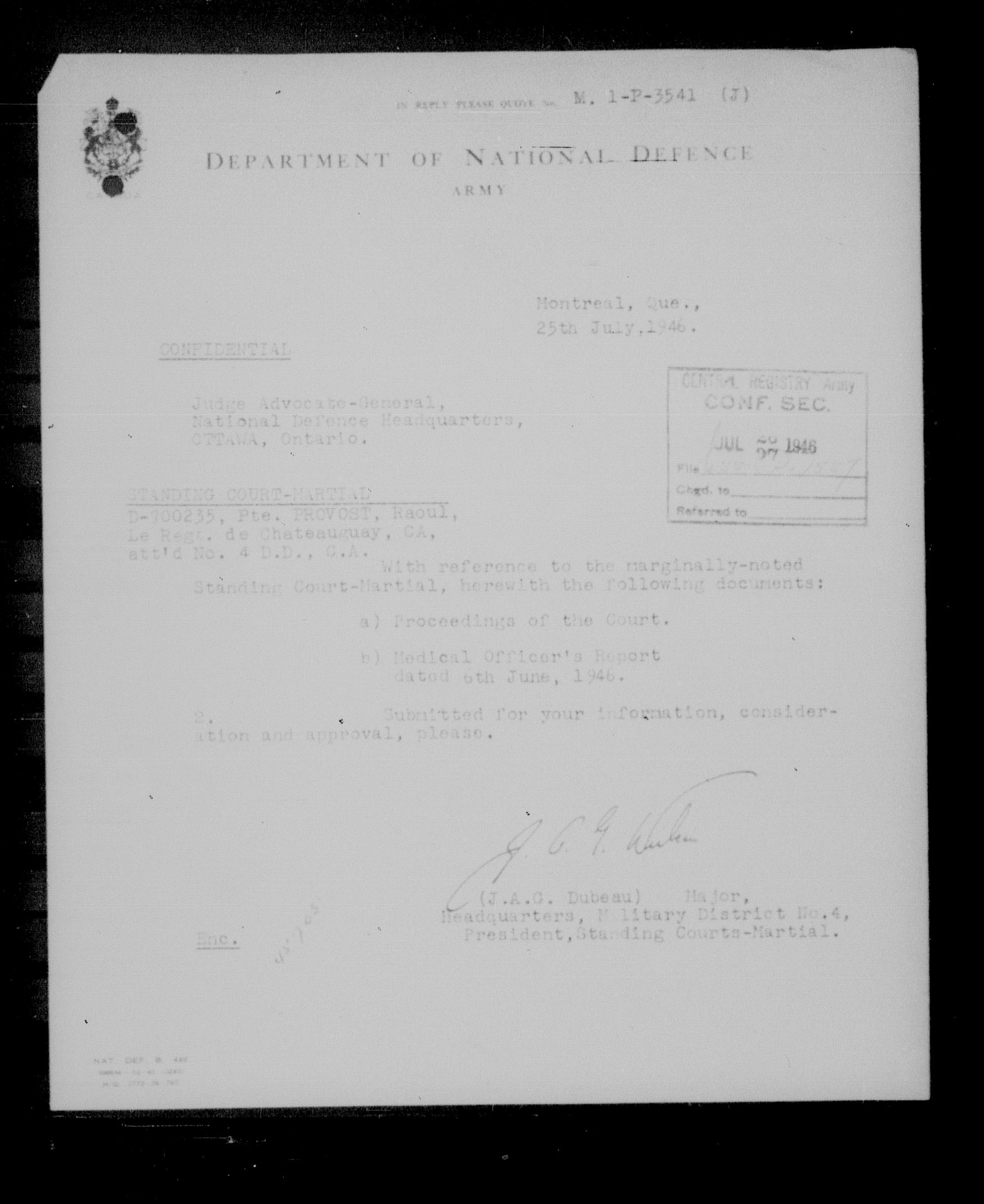 Canadian Army Courts Martial documents (1939-1945) - 15726
