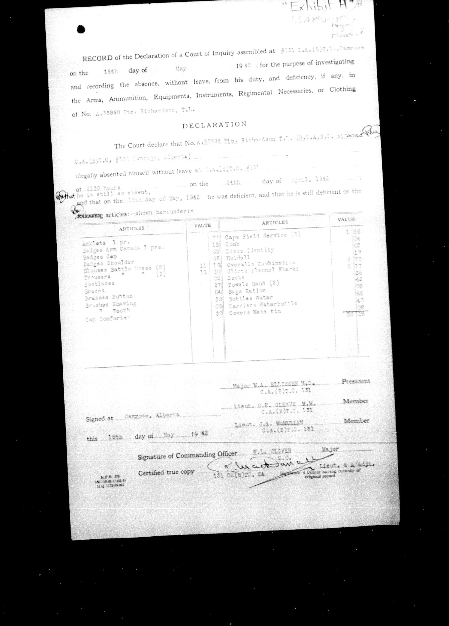 Canadian Army Courts Martial documents (1939-1945) - 15730
