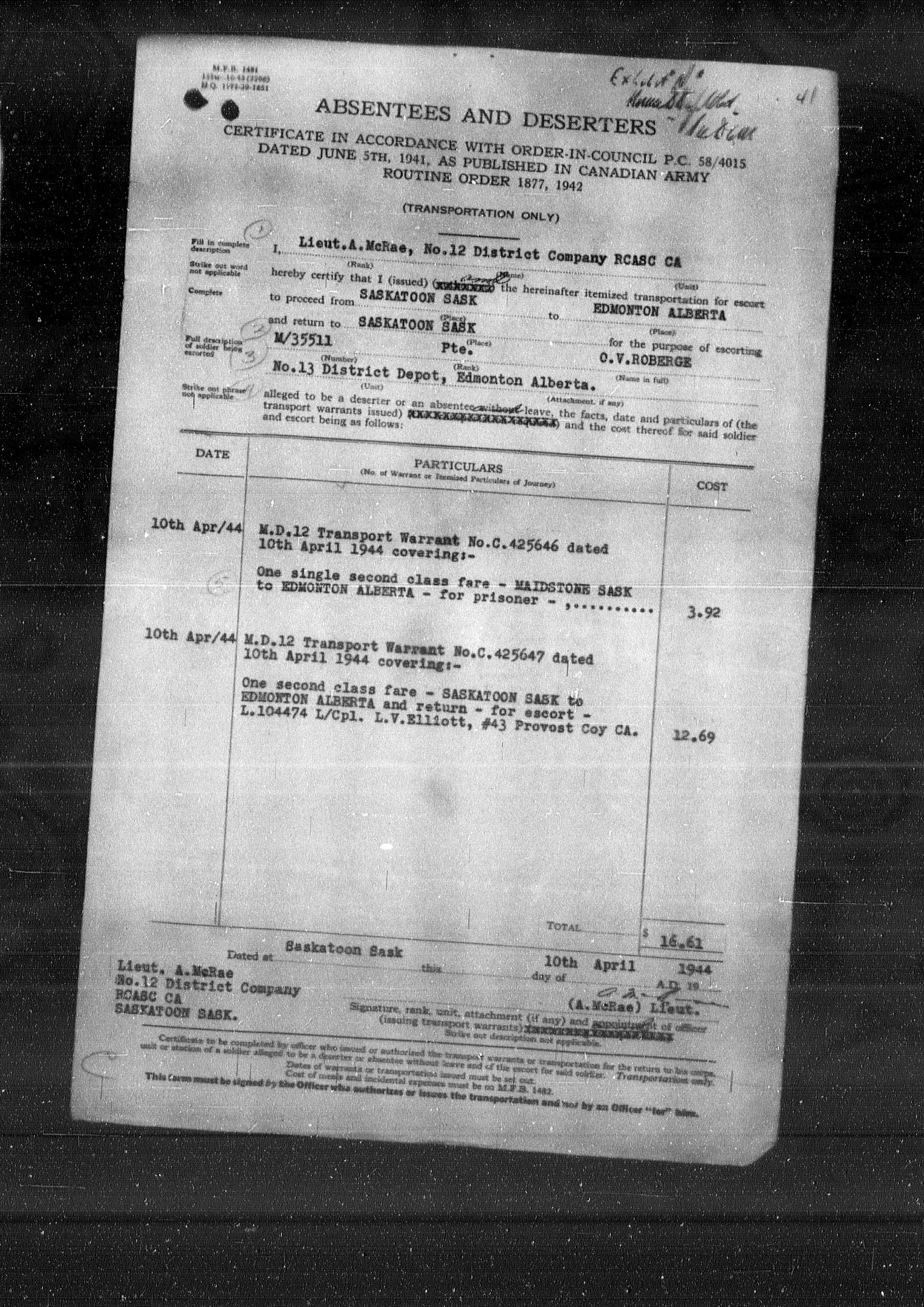 Canadian Army Courts Martial documents (1939-1945) - 15731