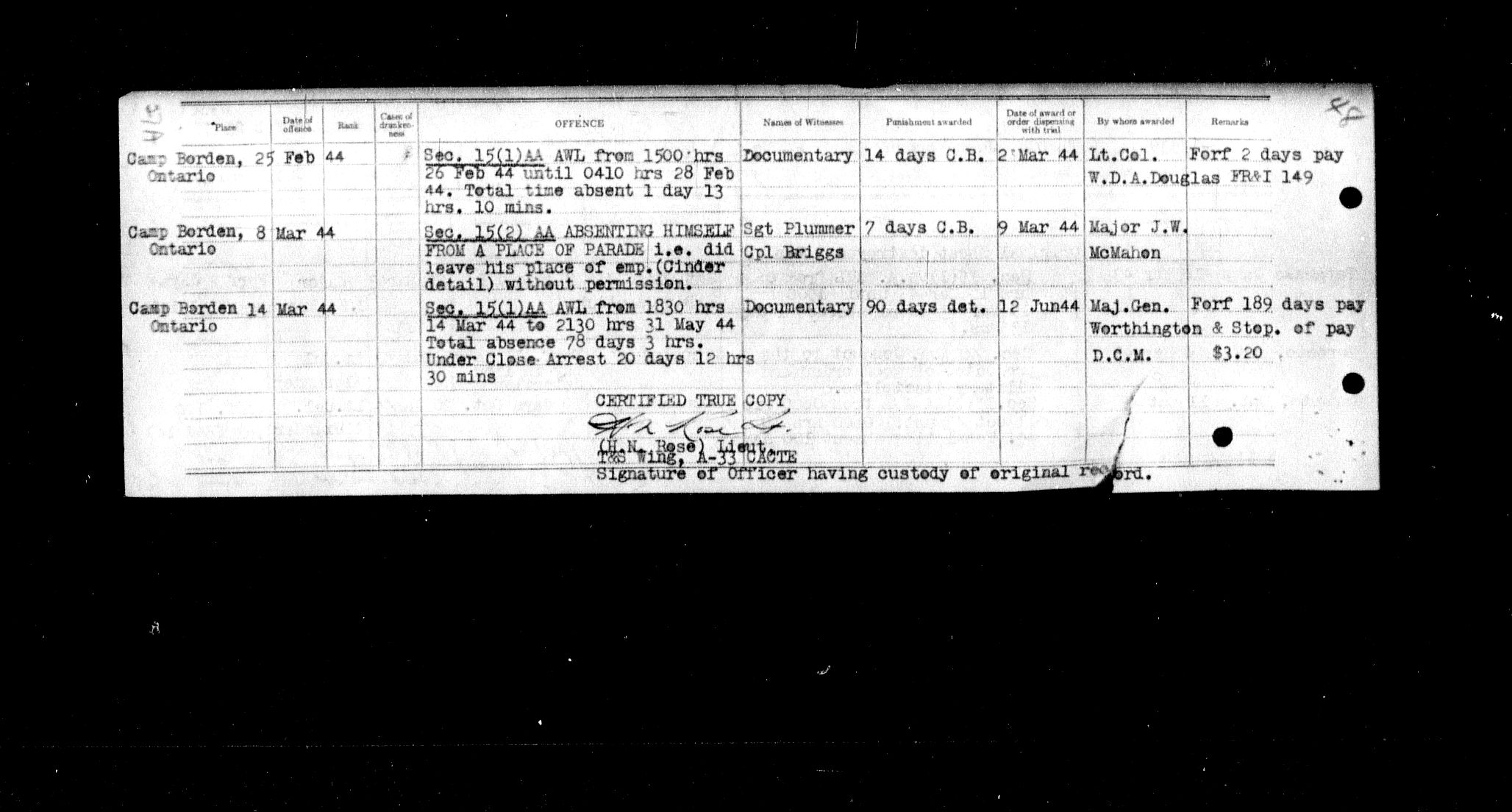 Canadian Army Courts Martial documents (1939-1945) - 15732