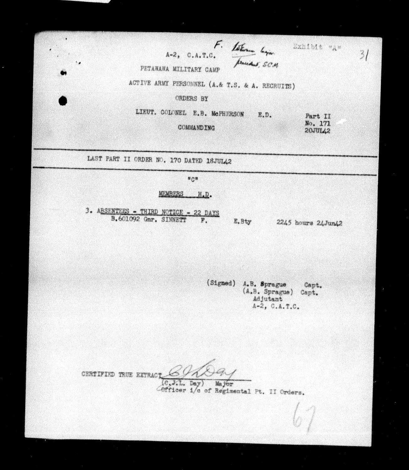 Canadian Army Courts Martial documents (1939-1945) - 15740