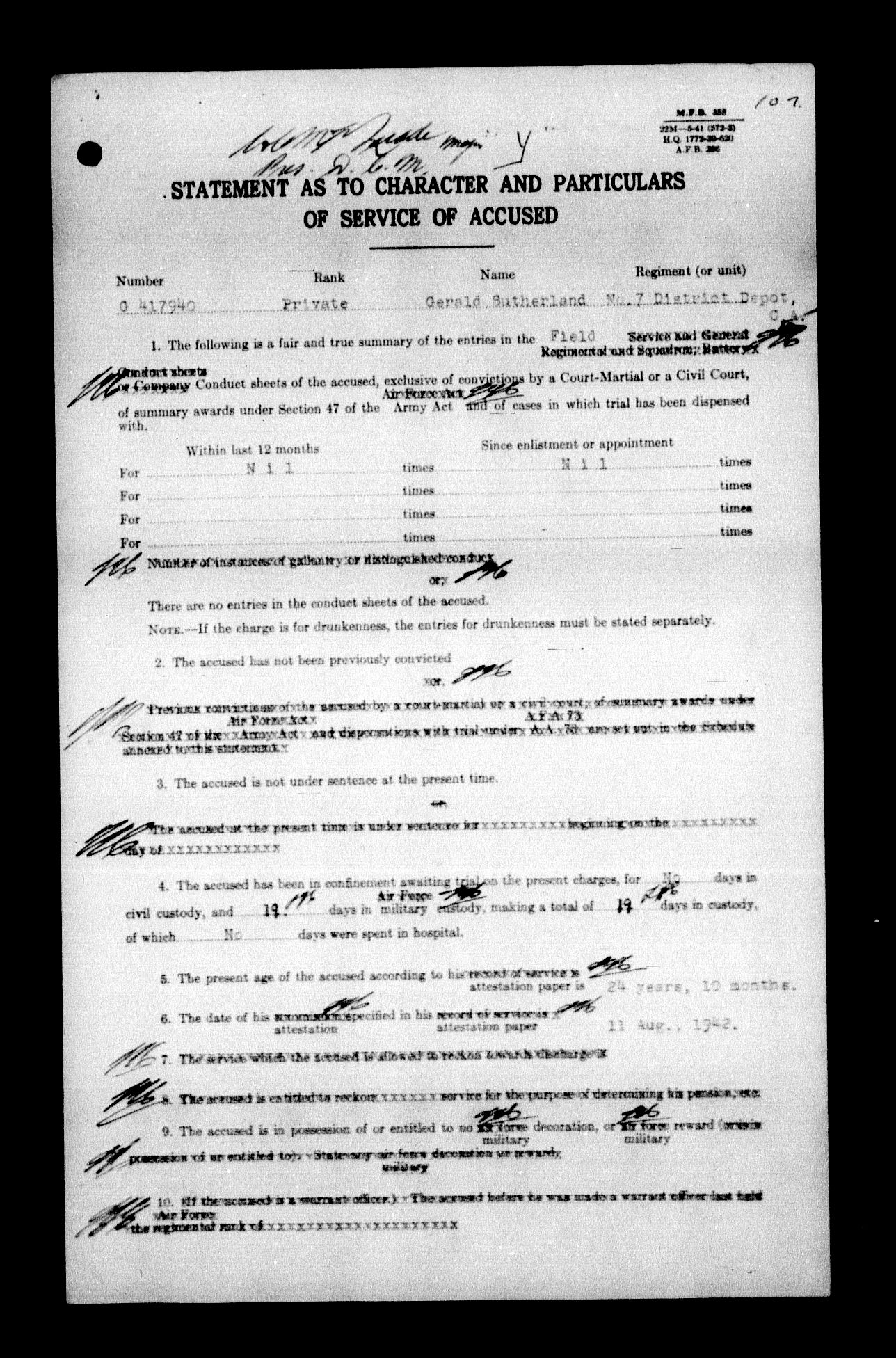 Canadian Army Courts Martial documents (1939-1945) - 15740