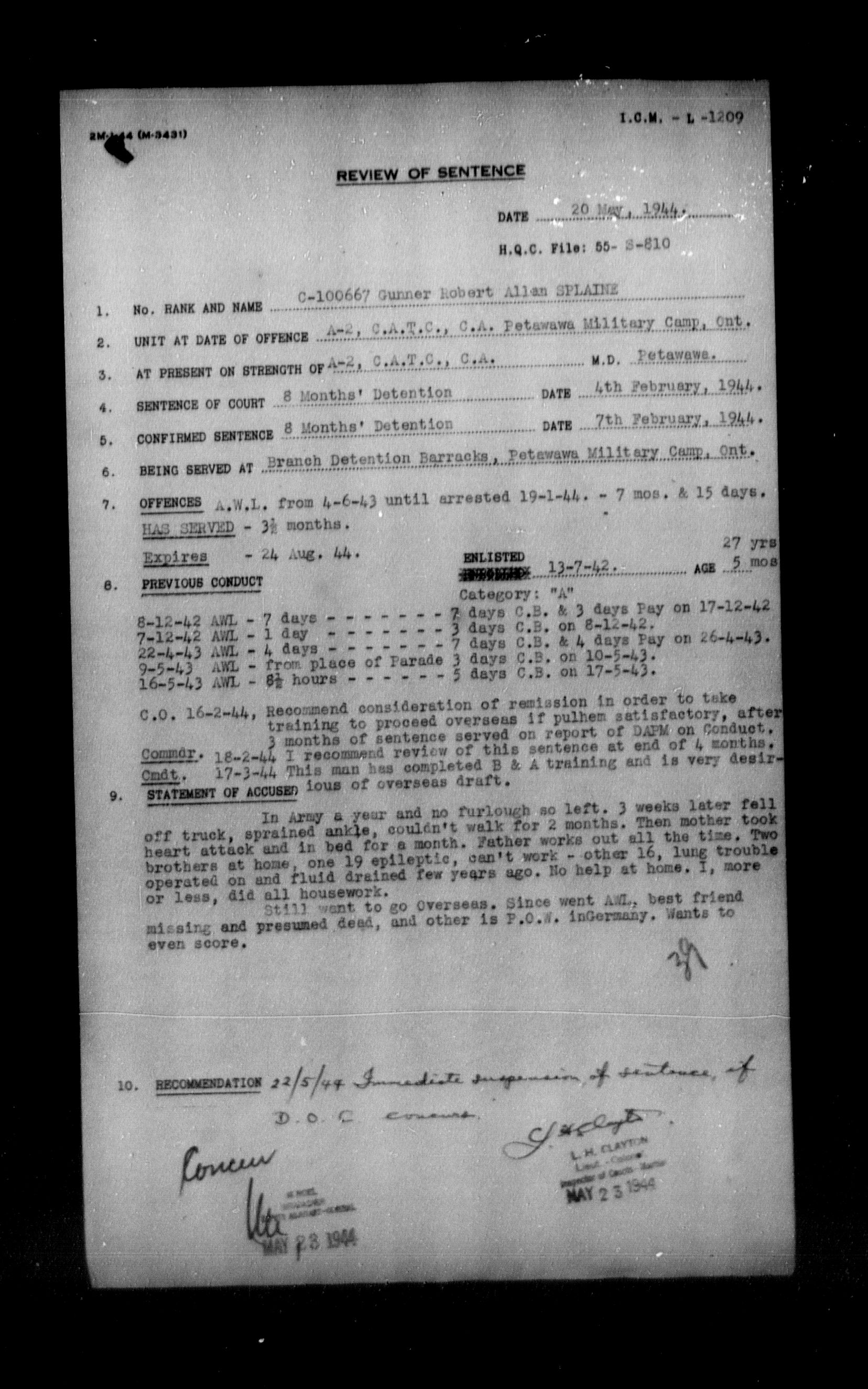 Canadian Army Courts Martial documents (1939-1945) - 15745
