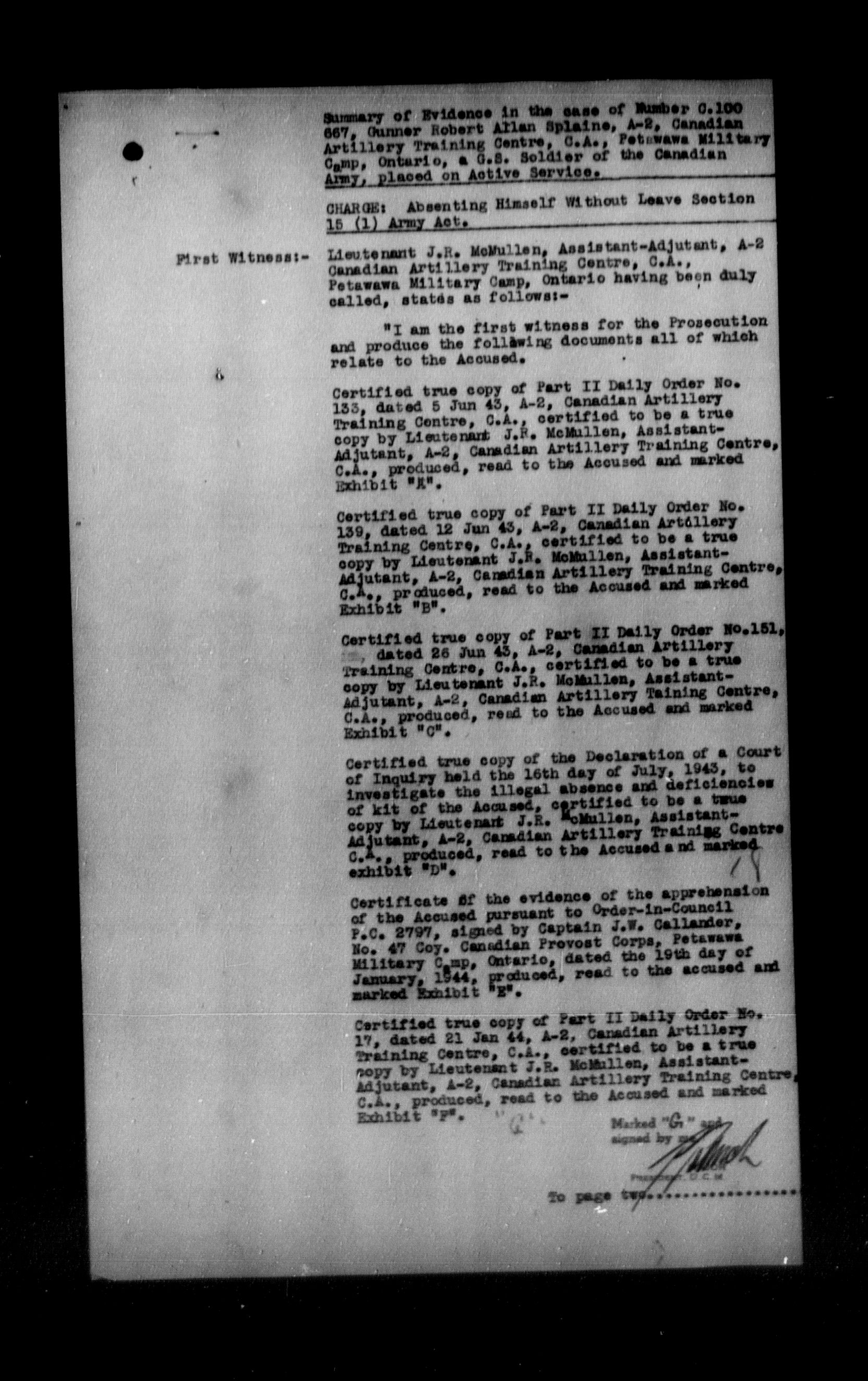Canadian Army Courts Martial documents (1939-1945) - 15745