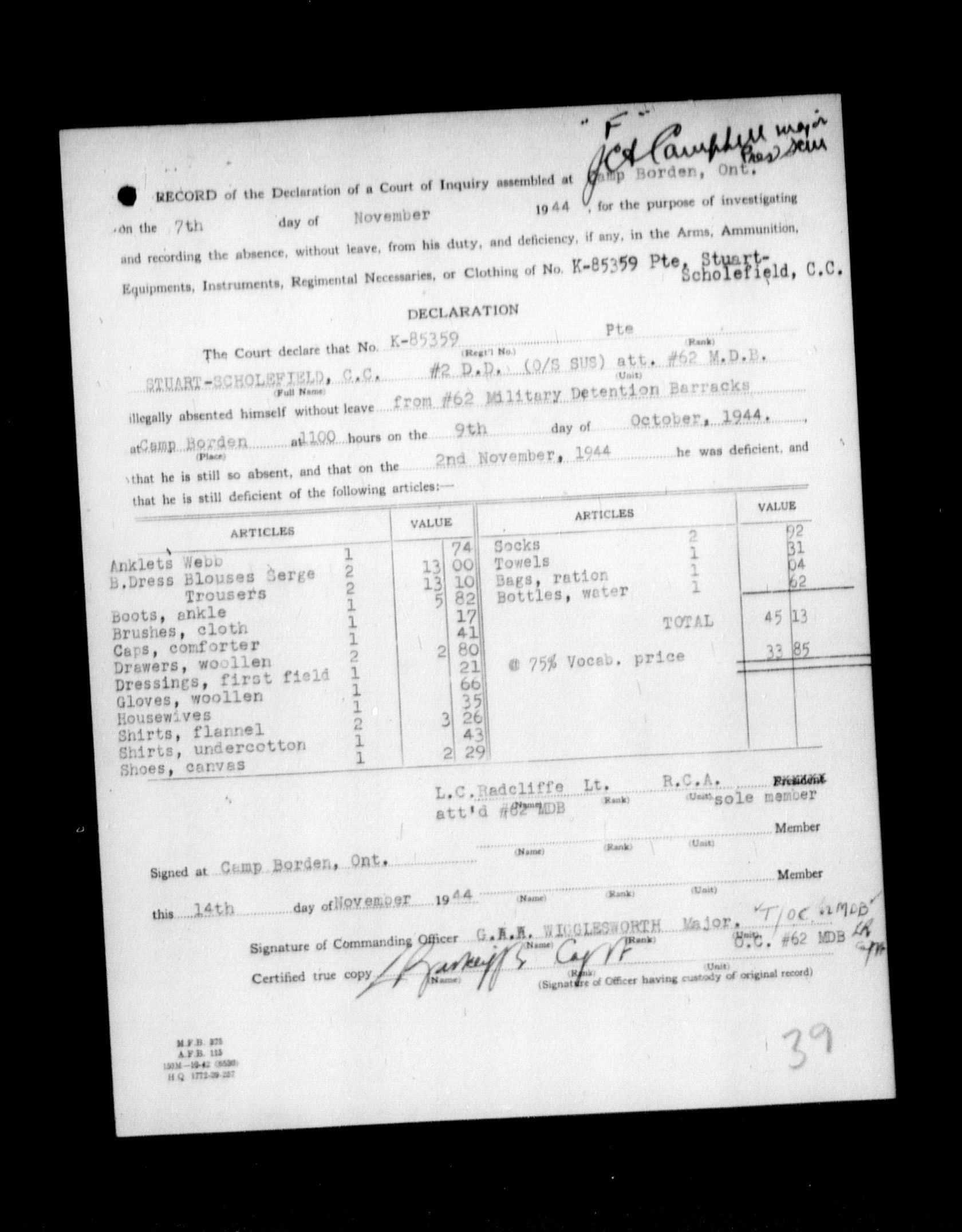 Canadian Army Courts Martial documents (1939-1945) - 15748