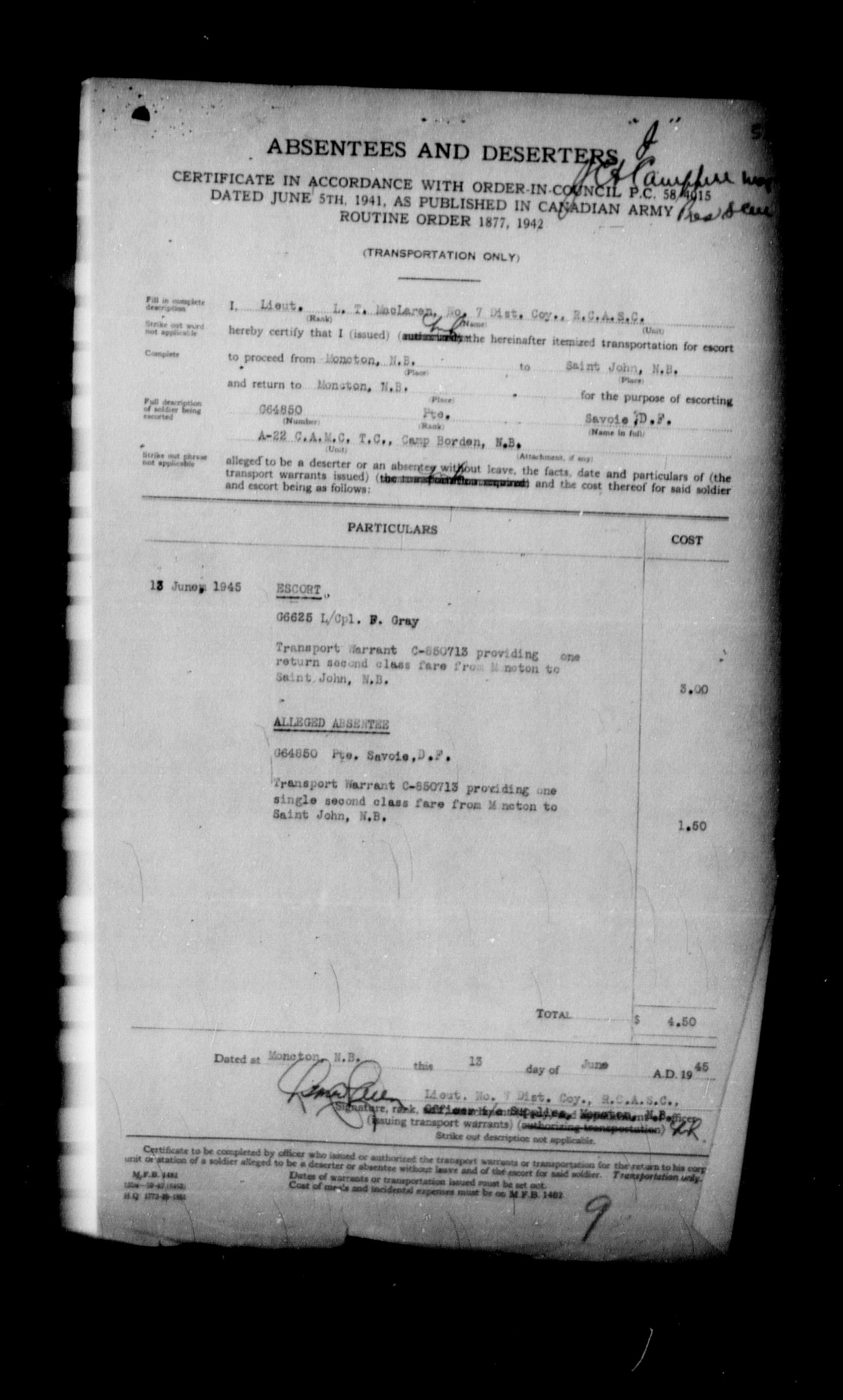 Canadian Army Courts Martial documents (1939-1945) - 15750