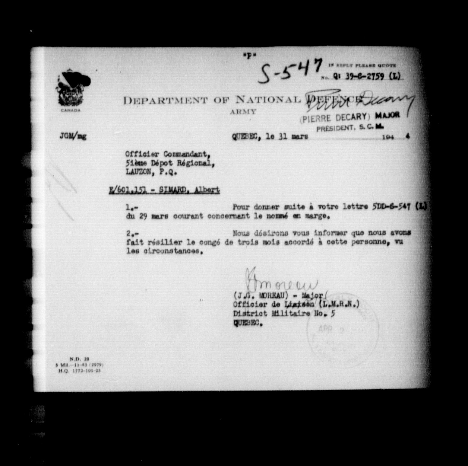 Canadian Army Courts Martial documents (1939-1945) - 15752