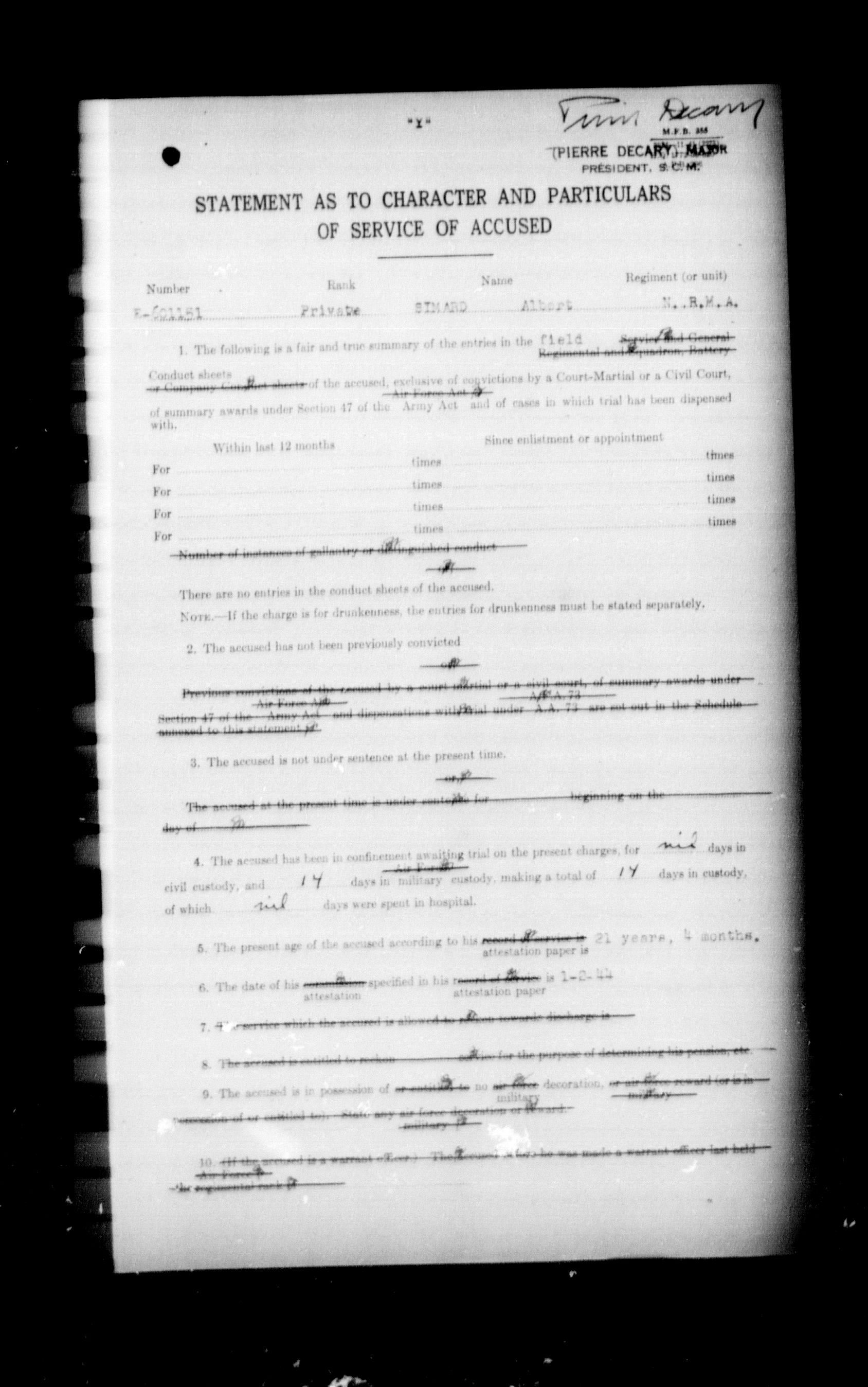 Canadian Army Courts Martial documents (1939-1945) - 15752