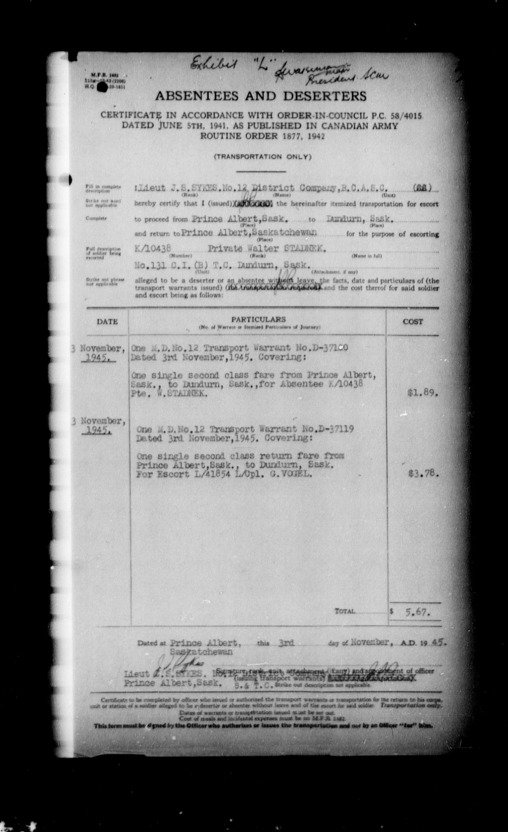 Canadian Army Courts Martial documents (1939-1945) - 15752