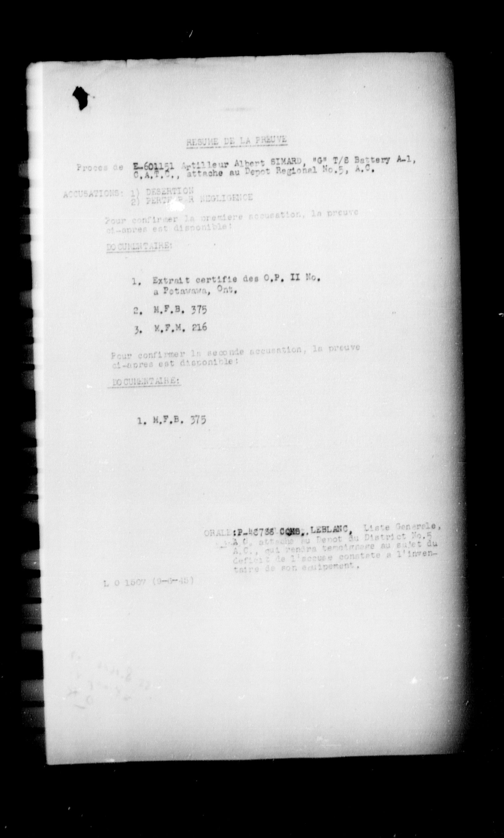 Canadian Army Courts Martial documents (1939-1945) - 15752