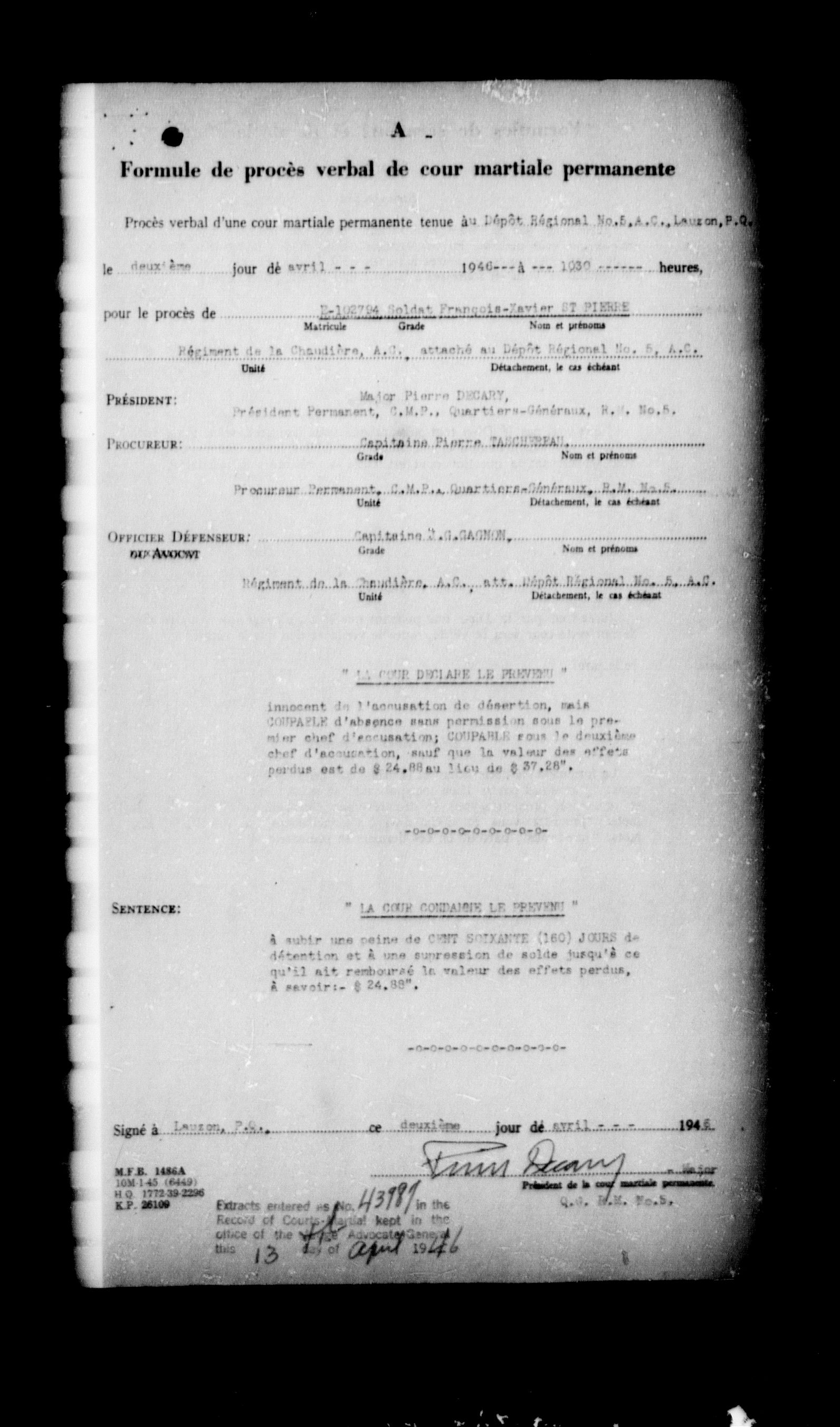 Canadian Army Courts Martial documents (1939-1945) - 15754
