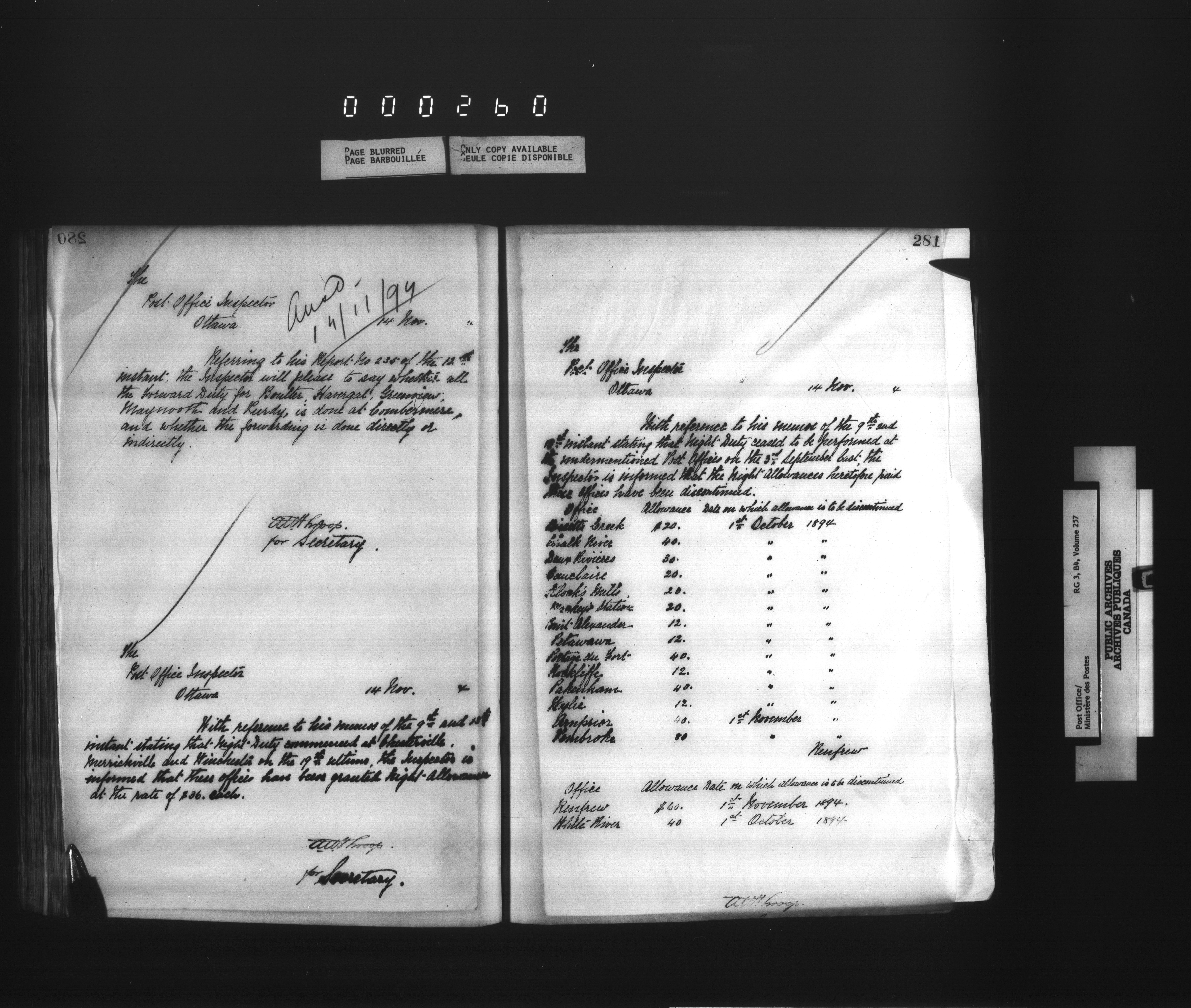 Deputy Postmaster General : correspondence addressed to the Post Office Inspectors, 1851-1902 - 1576