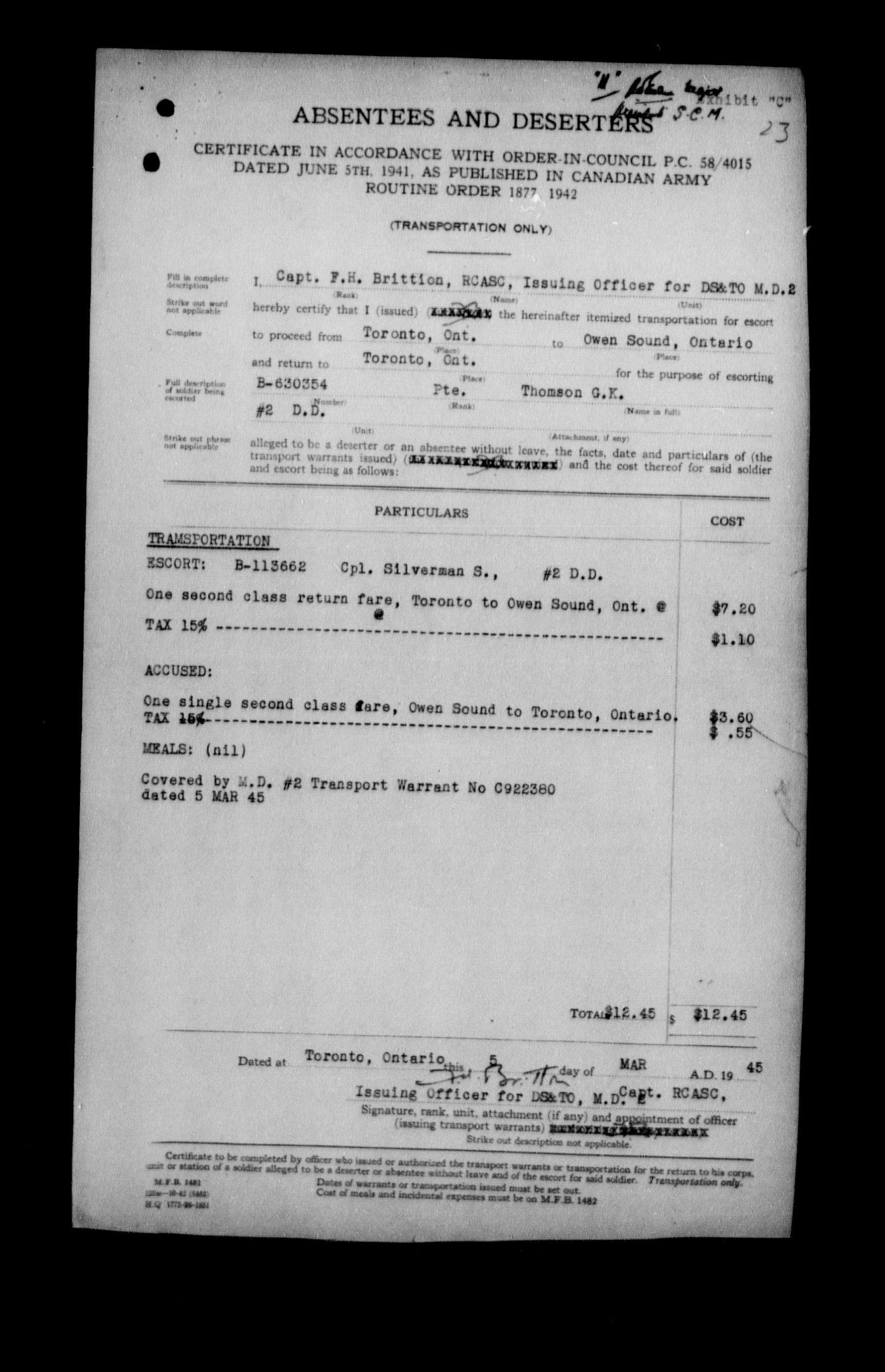Canadian Army Courts Martial documents (1939-1945) - 15761