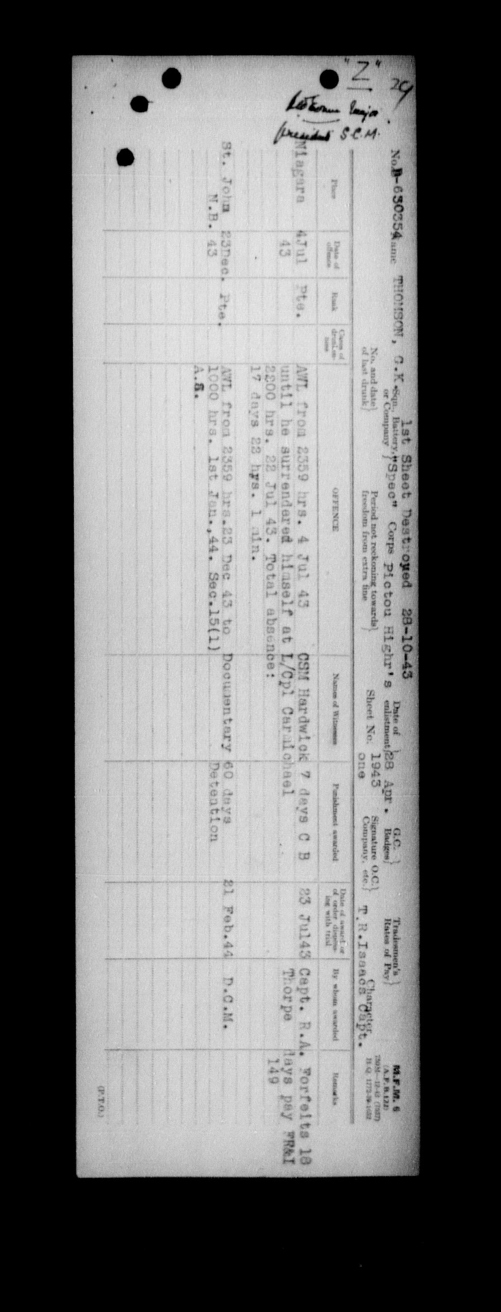 Canadian Army Courts Martial documents (1939-1945) - 15761