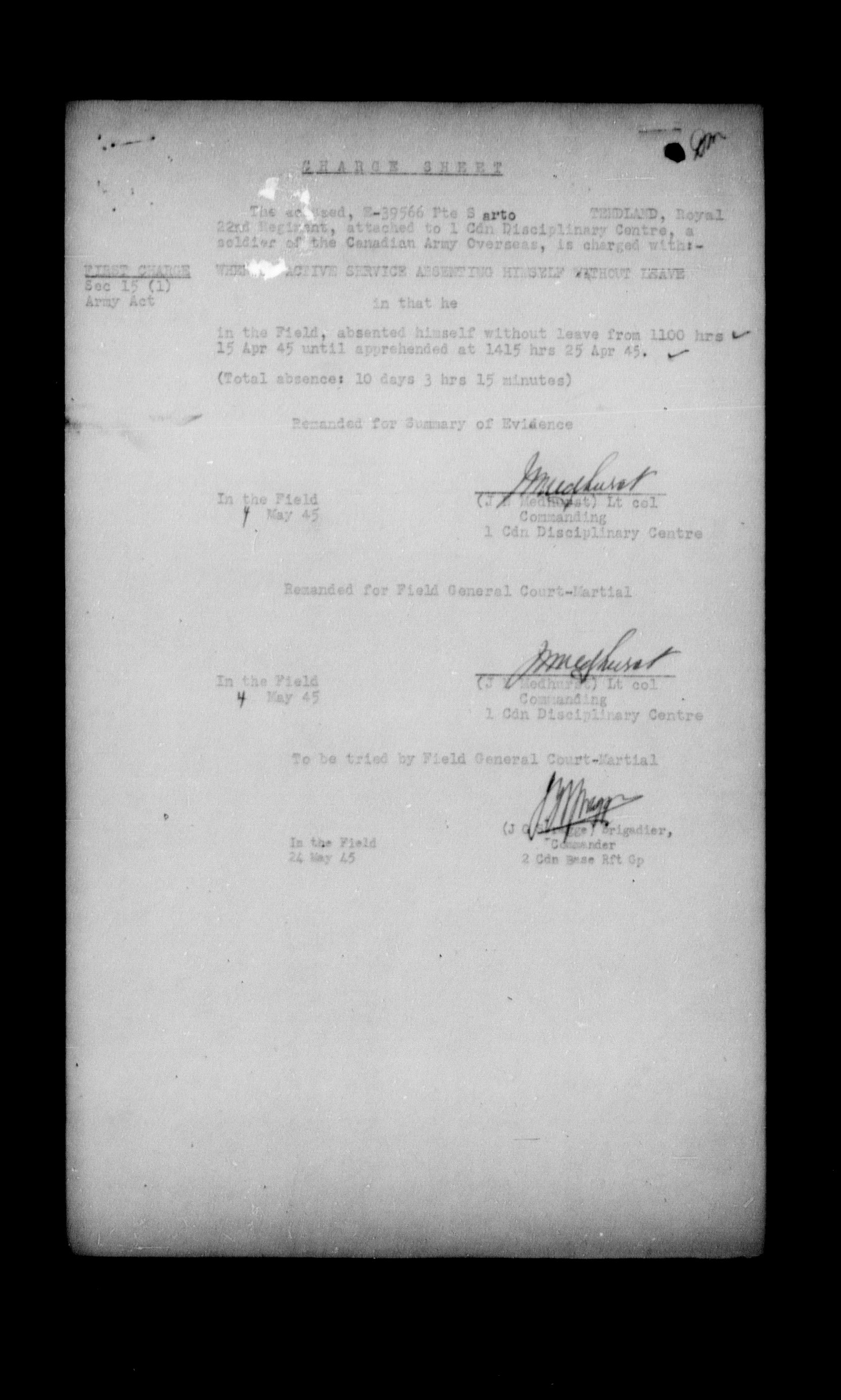 Canadian Army Courts Martial documents (1939-1945) - 15764