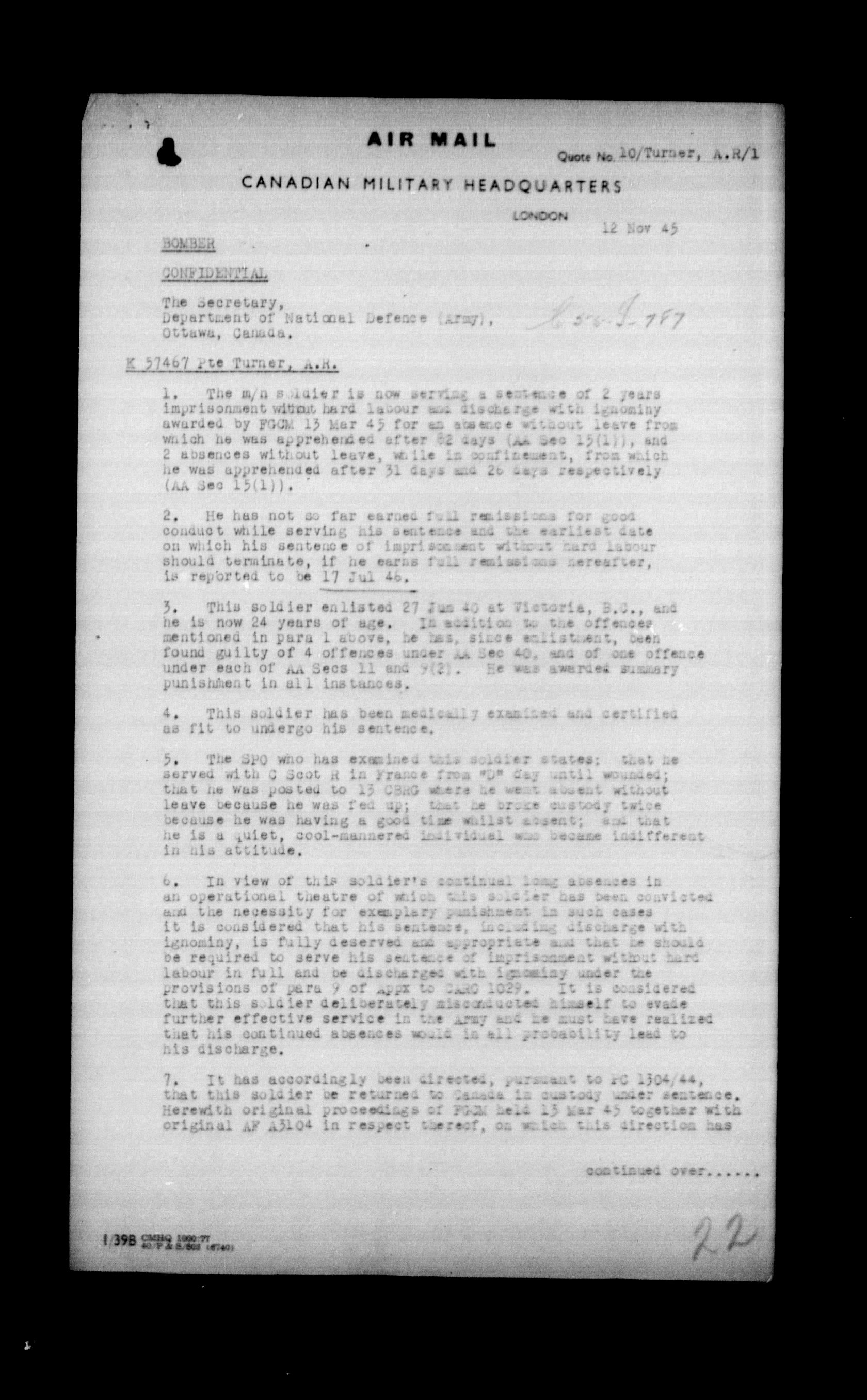 Canadian Army Courts Martial documents (1939-1945) - 15765