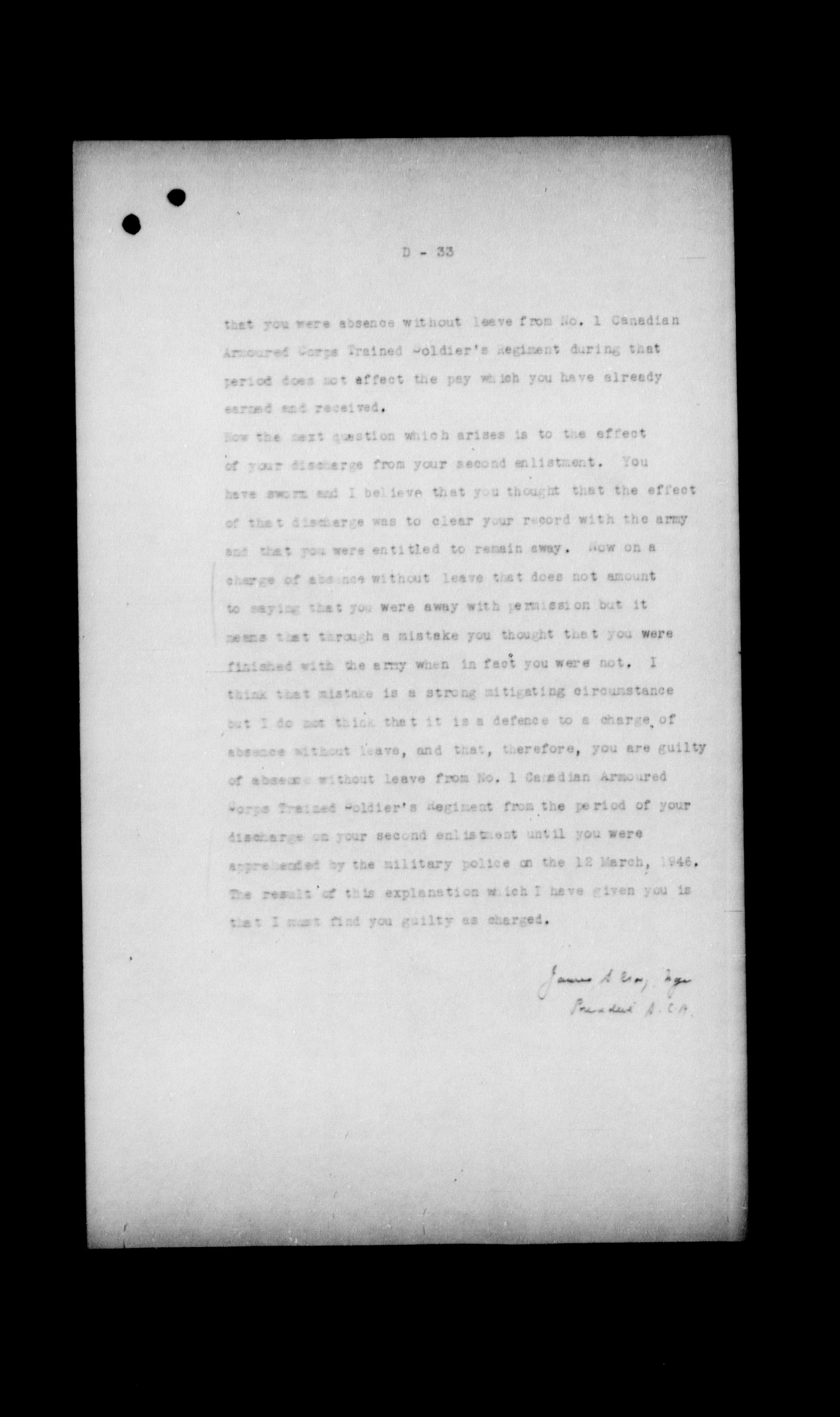 Canadian Army Courts Martial documents (1939-1945) - 15765