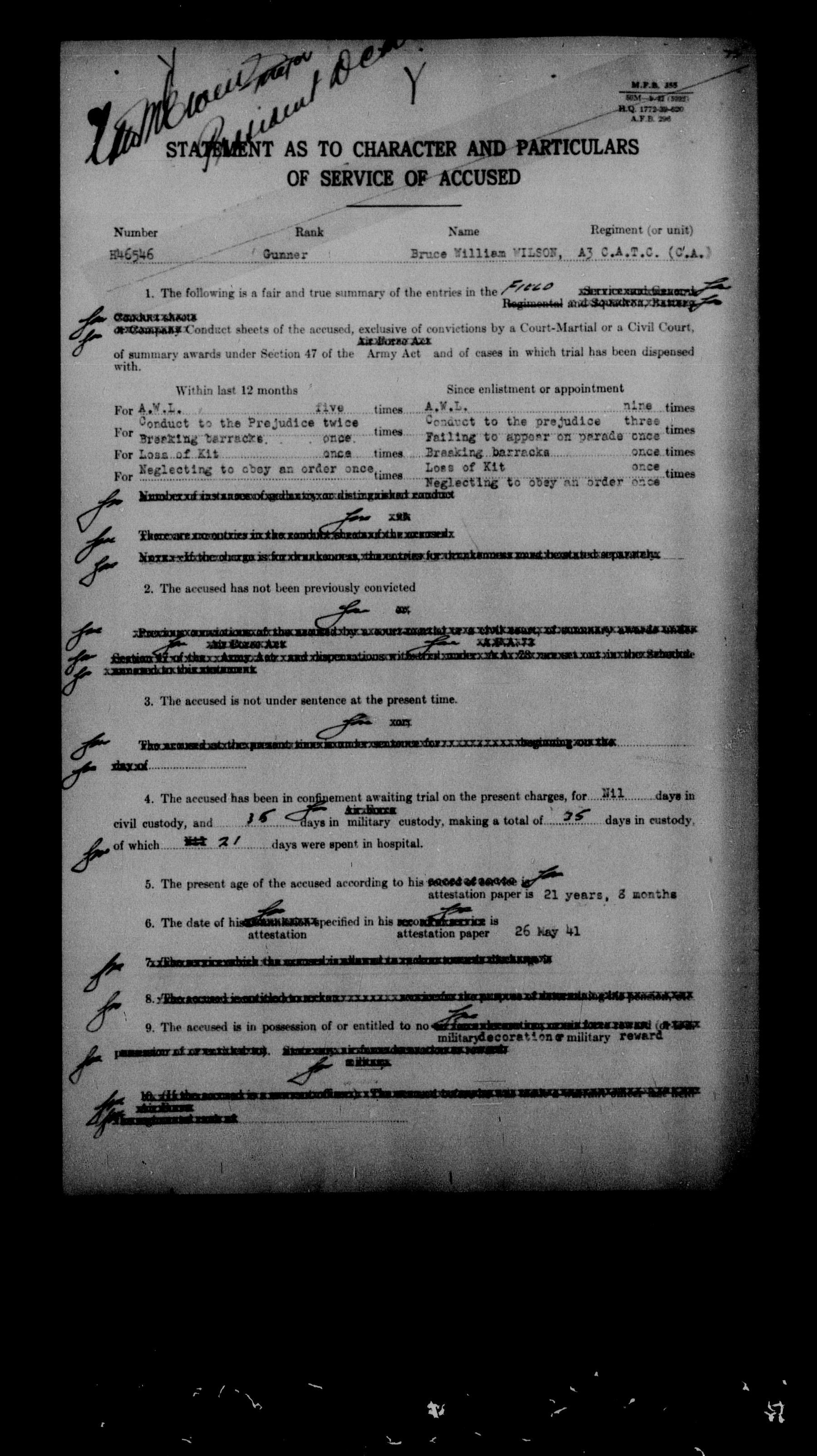 Canadian Army Courts Martial documents (1939-1945) - 15774