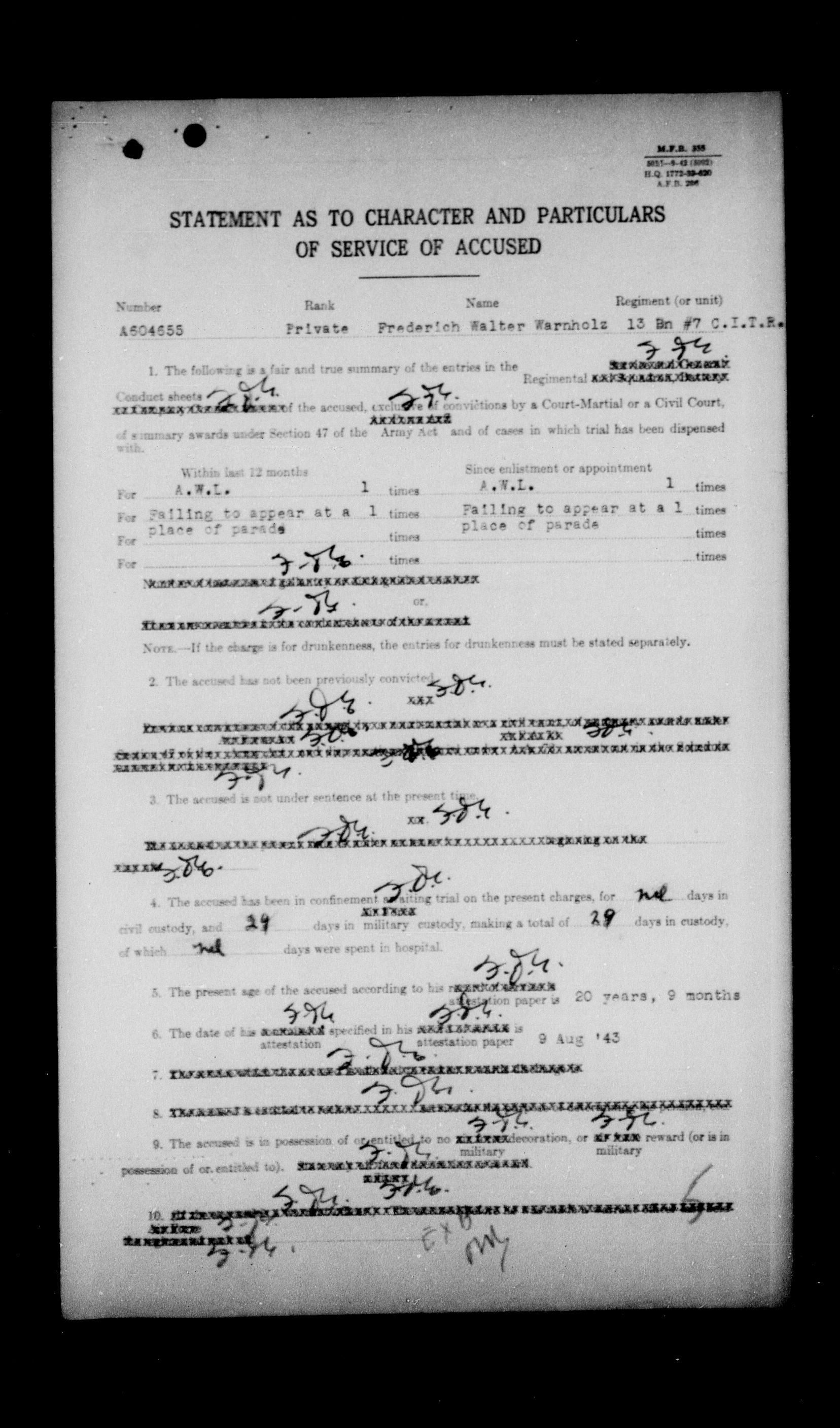 Canadian Army Courts Martial documents - 15778