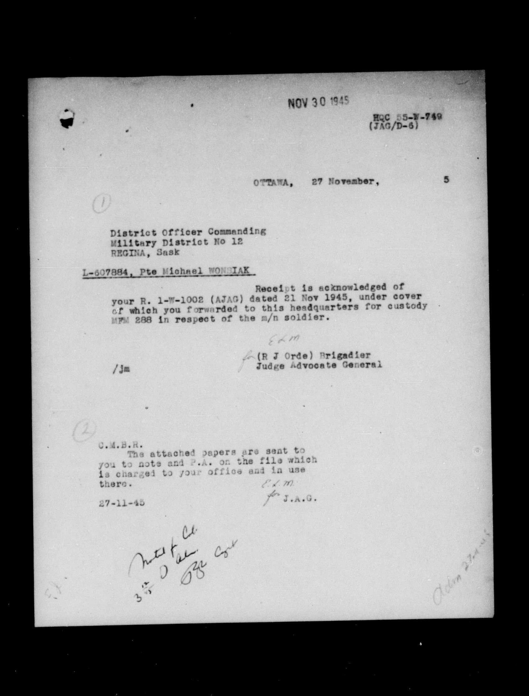 Canadian Army Courts Martial documents - 15778