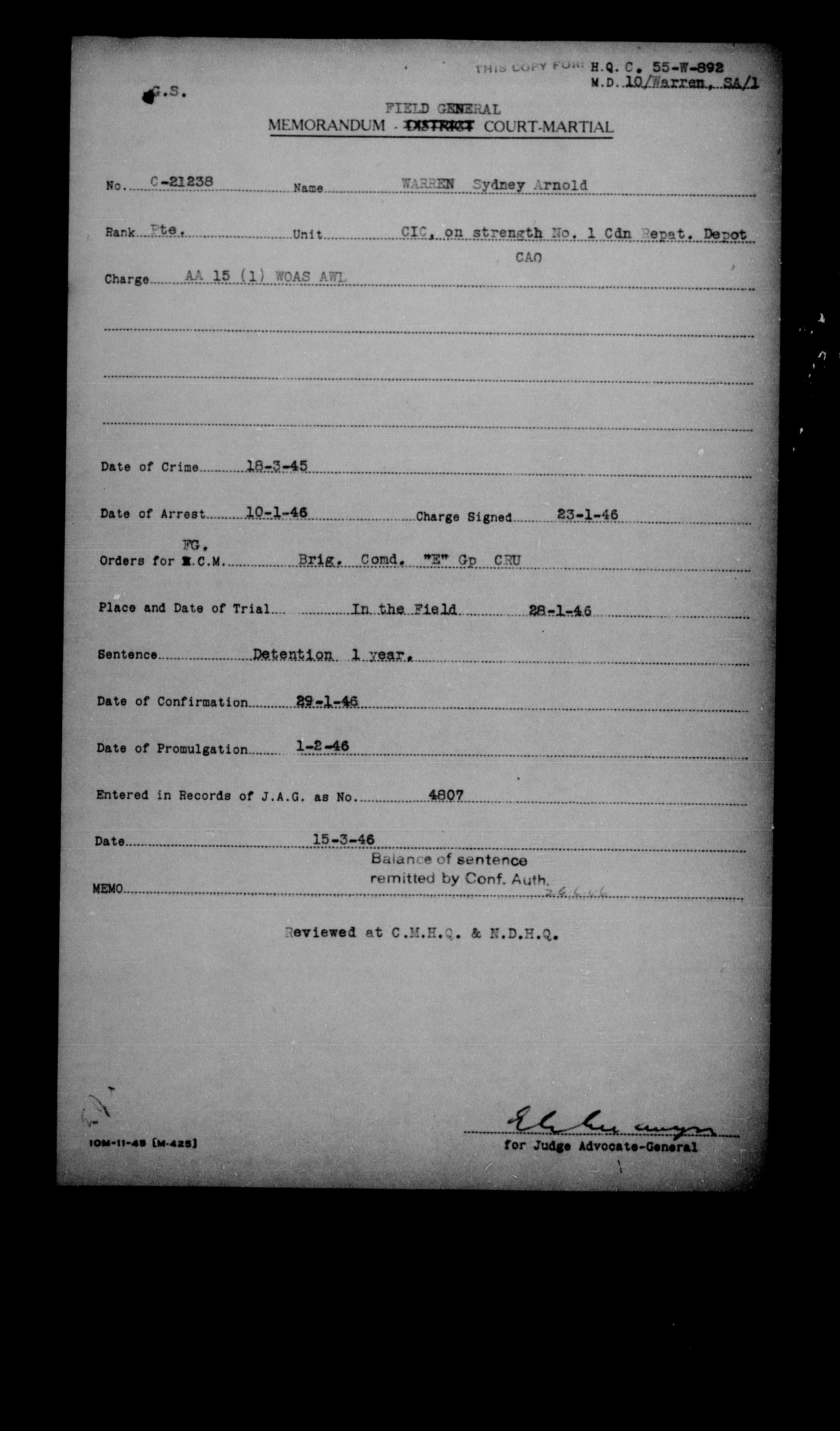 Canadian Army Courts Martial documents (1939-1945) - 15779