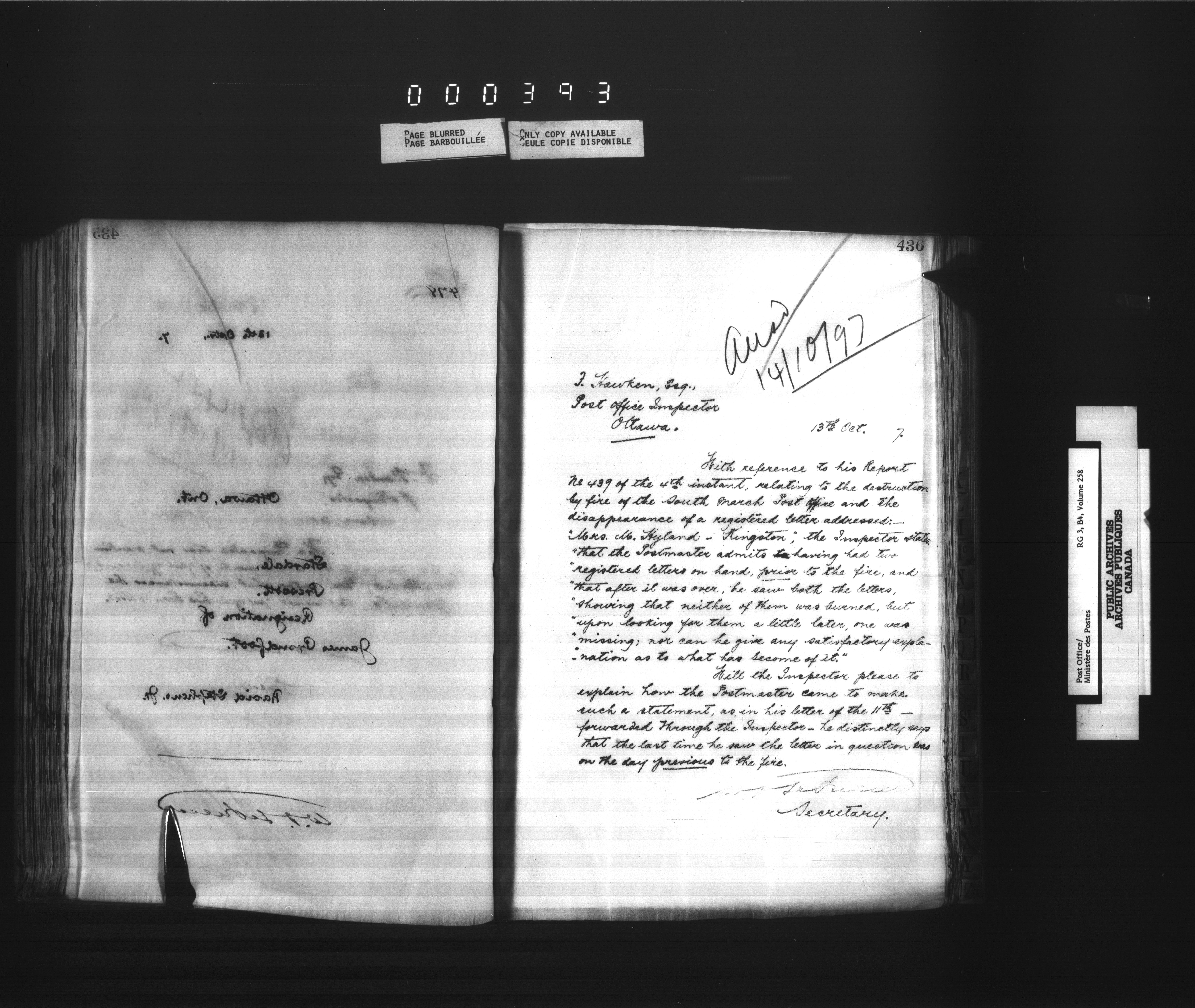 Deputy Postmaster General : correspondence addressed to the Post Office Inspectors, 1851-1902 - 1578