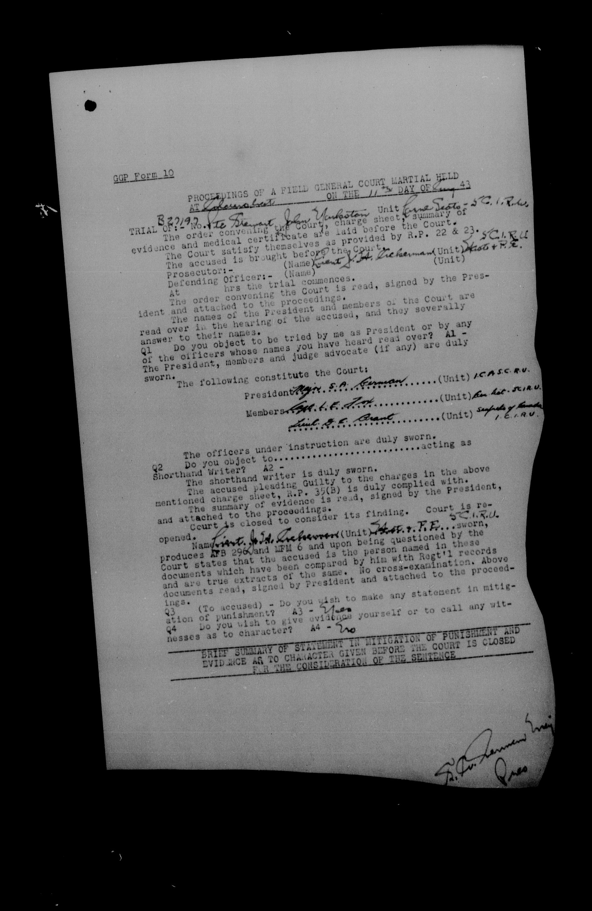 Canadian Army Courts Martial documents (1939-1945) - 15782