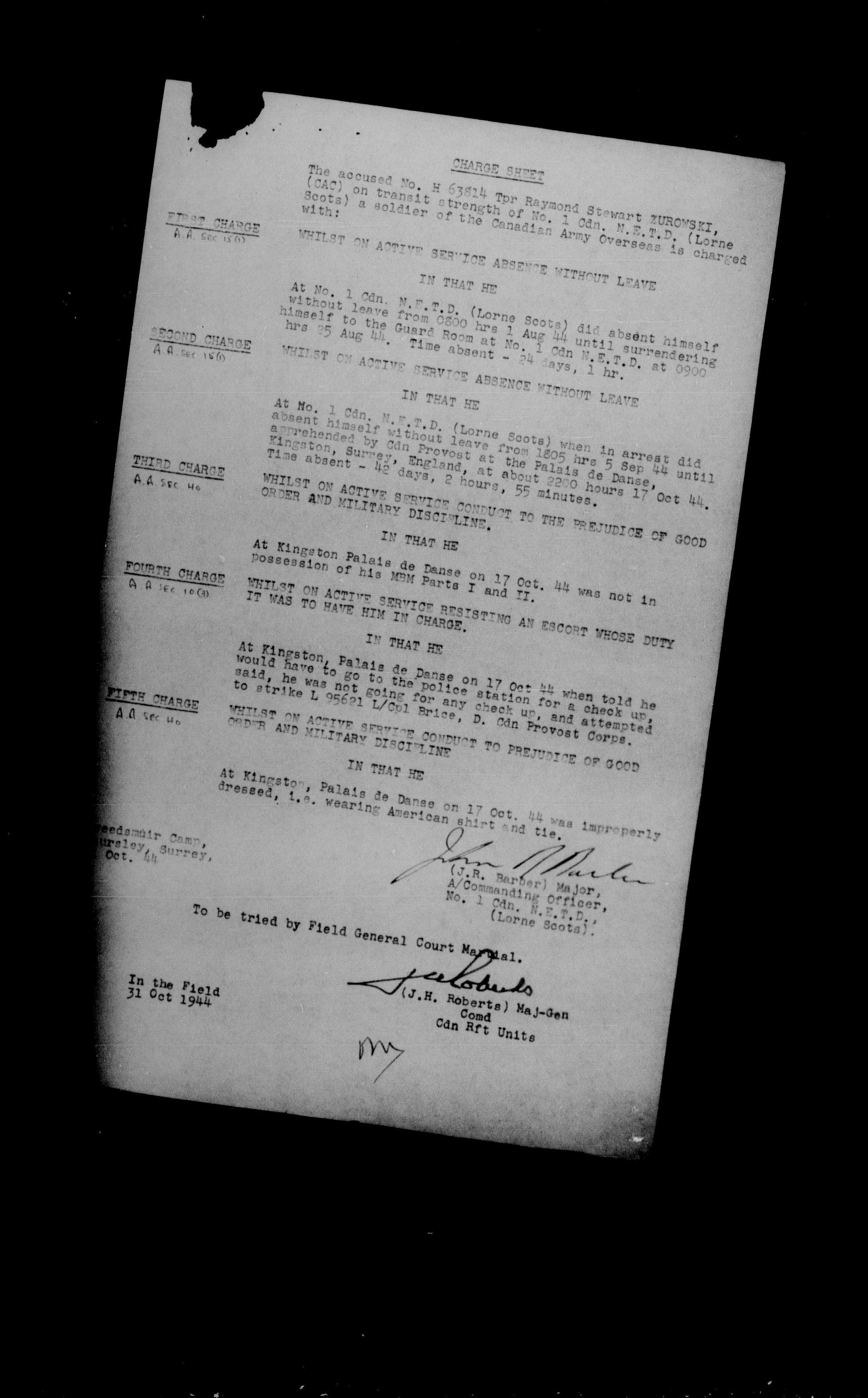 Canadian Army Courts Martial documents (1939-1945) - 15783