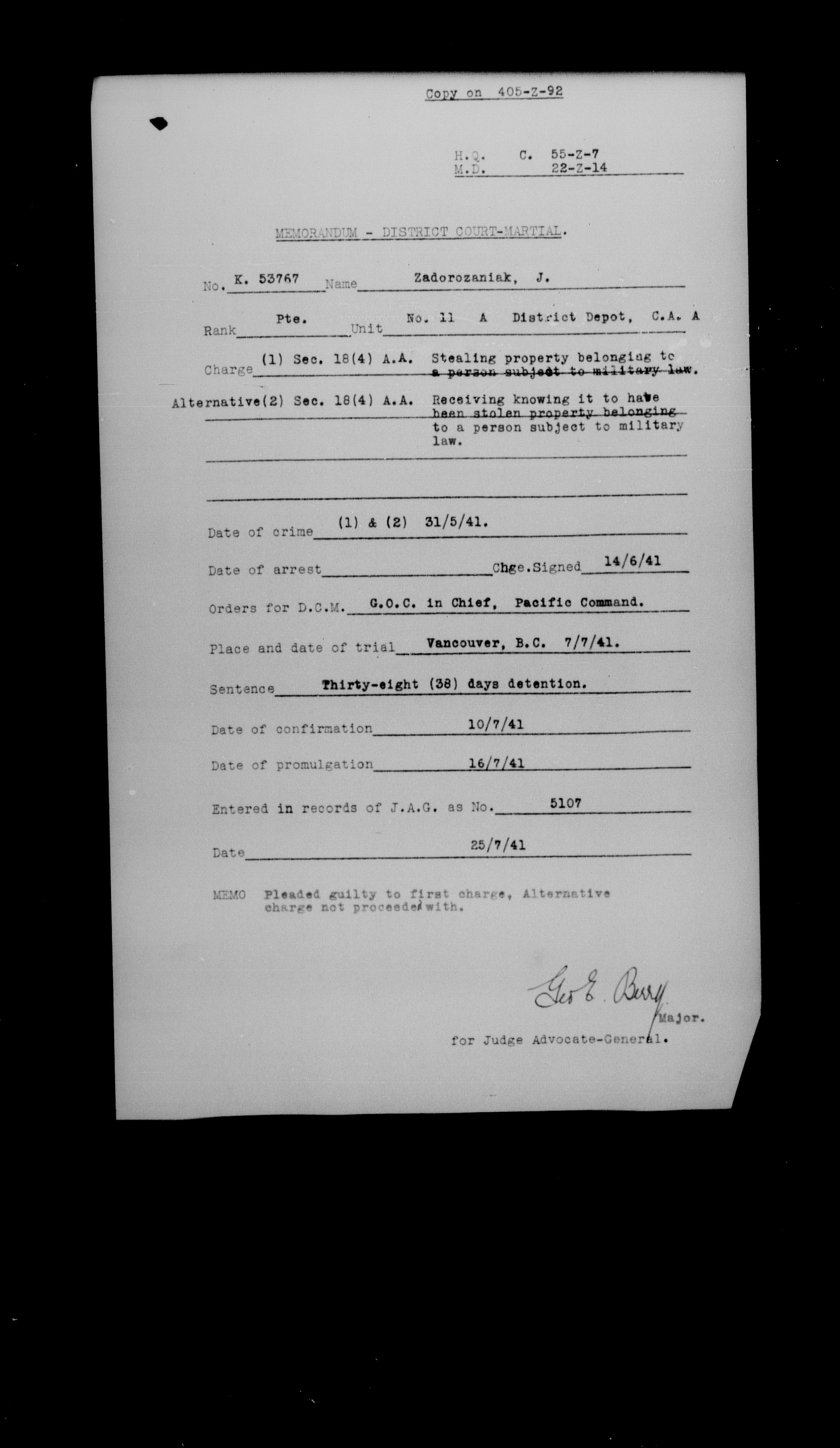 Canadian Army Courts Martial documents (1939-1945) - 15783