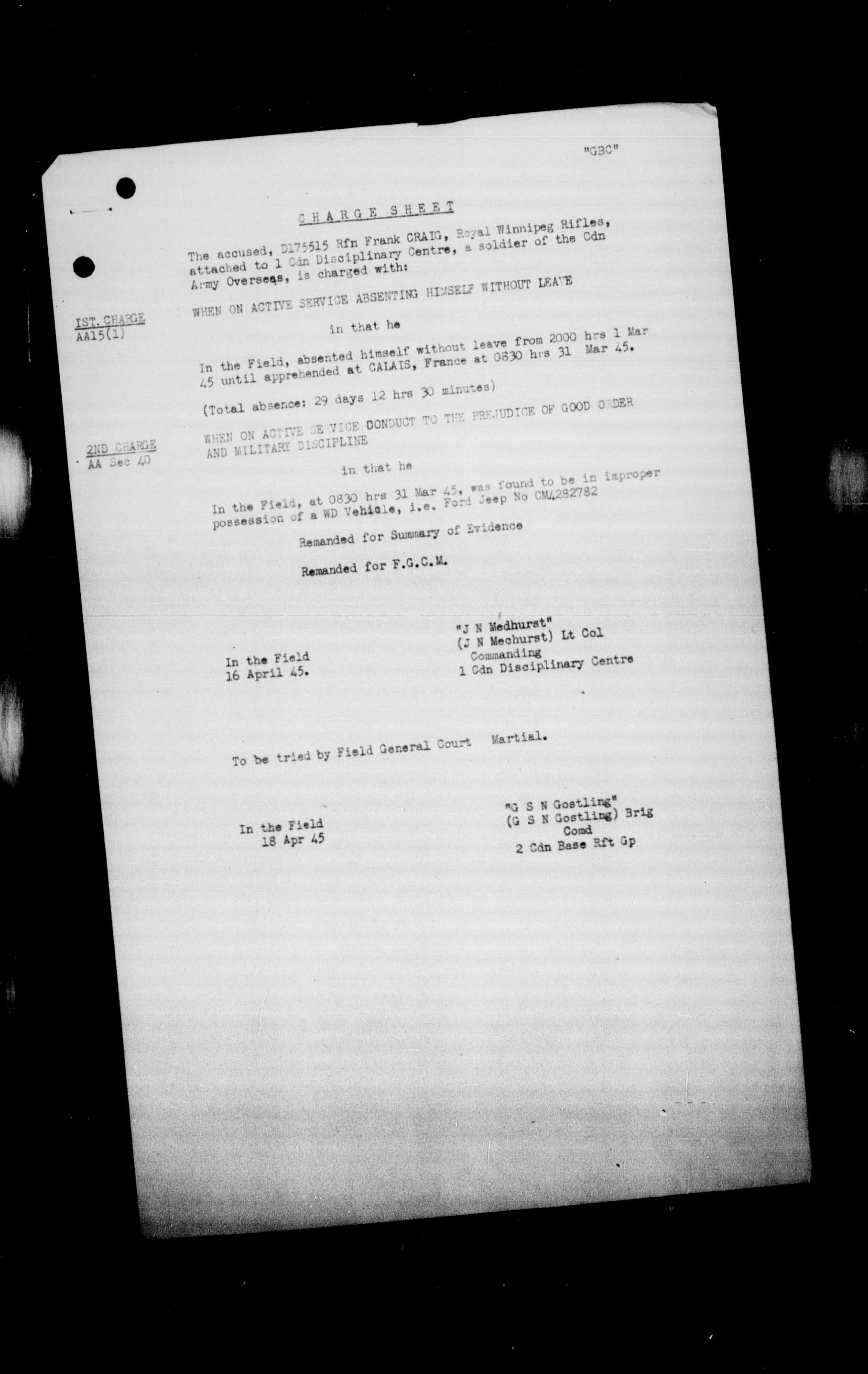 Canadian Army Courts Martial documents (1939-1945) - 15795
