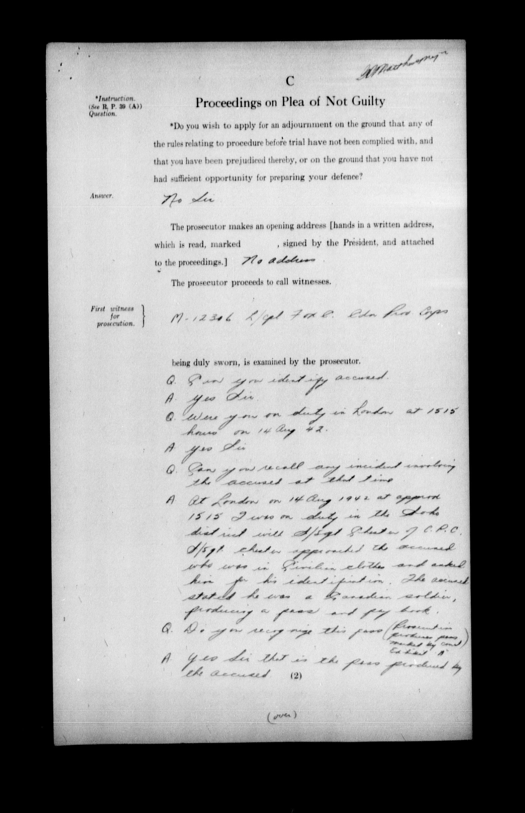 Canadian Army Courts Martial documents (1939-1945) - 15806
