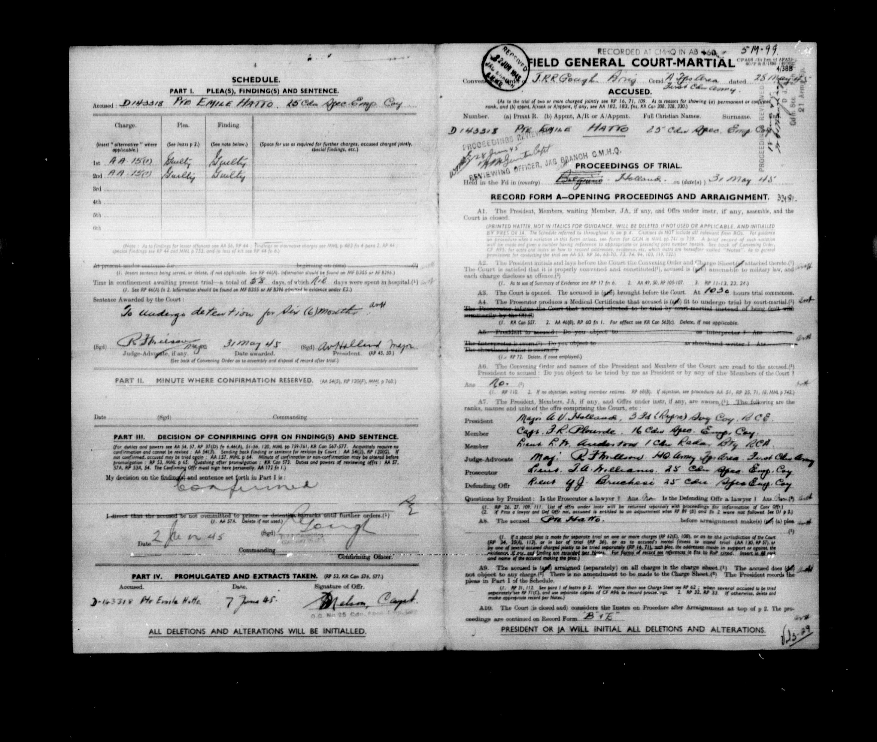Canadian Army Courts Martial documents (1939-1945) - 15811
