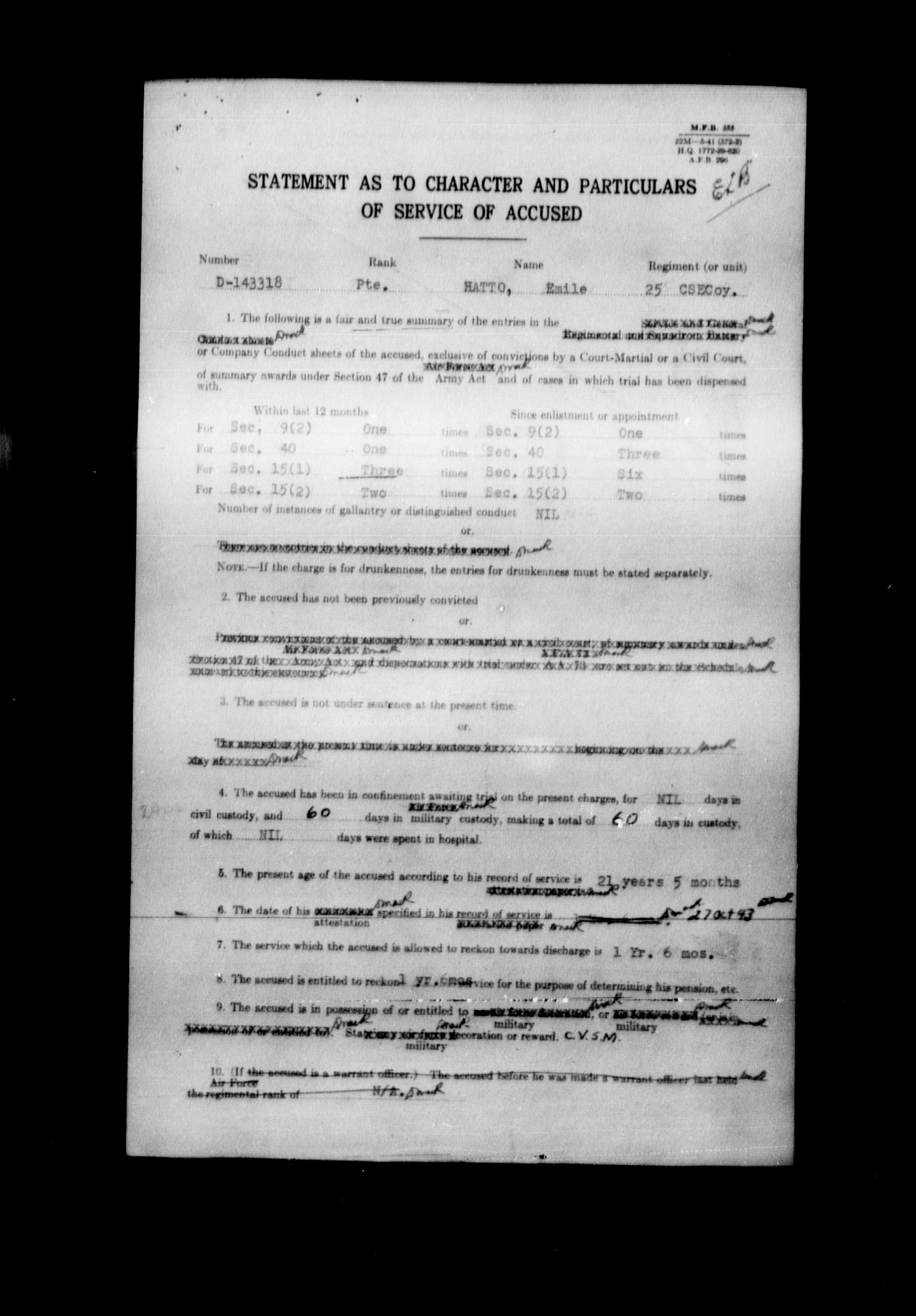 Canadian Army Courts Martial documents (1939-1945) - 15811